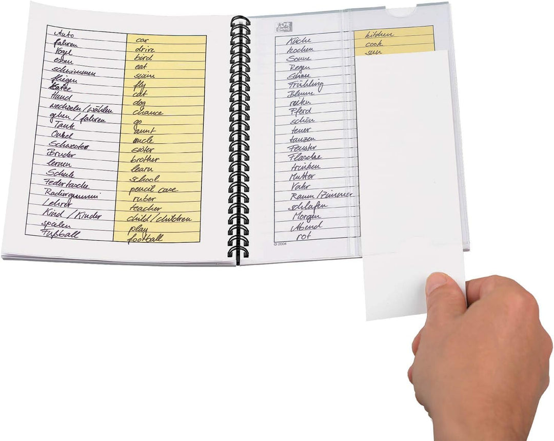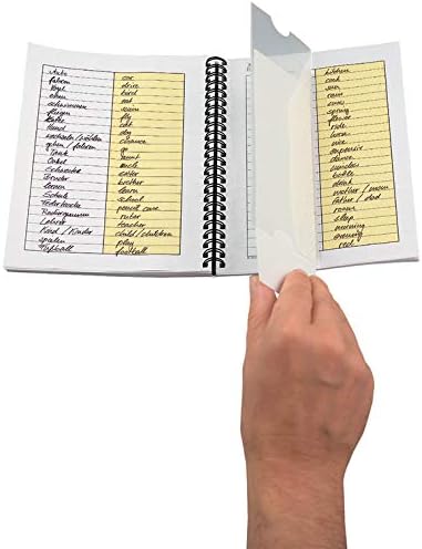 - Mit der innovativen Lernhilfe können die Wörter einer Sprache abgedeckt und durch Herunterziehen der bilckdichten Folie nacheinander freigegeben werden