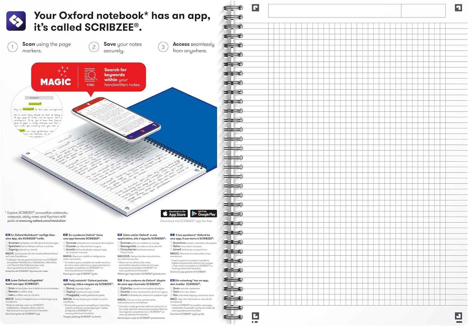 - 5 karierte Spiralblöcke in fünf verschieden Farben und mit robusten, flexiblen Kunststoff-Covern