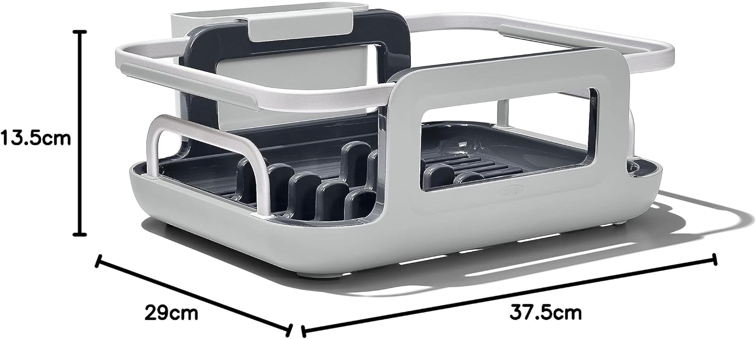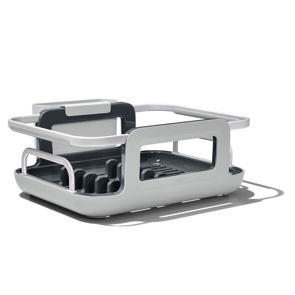 OXO Good Grips Ausziehbares Aluminium-Geschirrgestell für die Spüle, Abtropfgestell für Spülbecken,