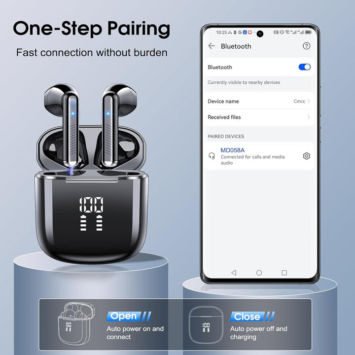 - 25-Stunden-Wiedergabe und LED-Batterieanzeige: Die Ohrhörer bieten eine normale Nutzungszeit von 5 Stunden nach einer Aufladung, und die kompakte Ladehülle verlängert die Gesamtnutzung auf zusätzliche 20 Stunden. Dank des USB-C-Ladeanschlusses dauert