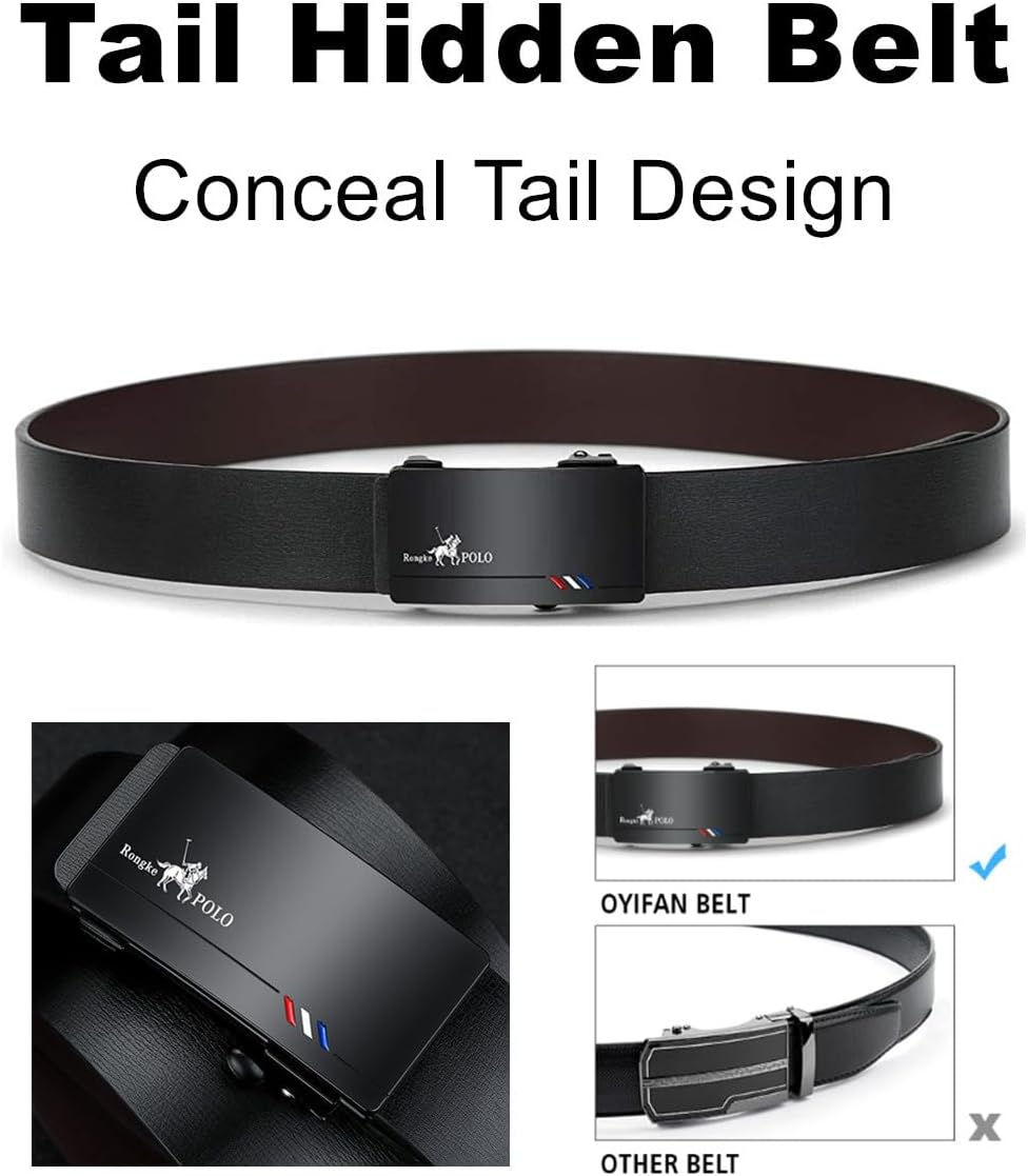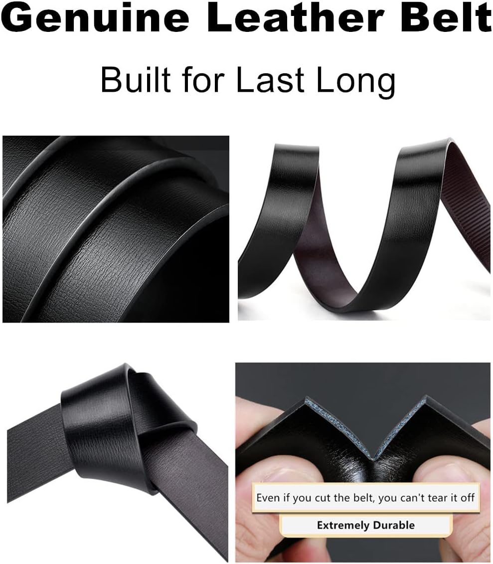 Schwarzer Ledergürtel für Herren, Schnellverschluss-Ratschengürtel, Designer-Gürtel, verstellbarer Komfort-Klick-Gürtel mit automatischen Schiebeschnallen für Jeans, Hosen, Golfhosen