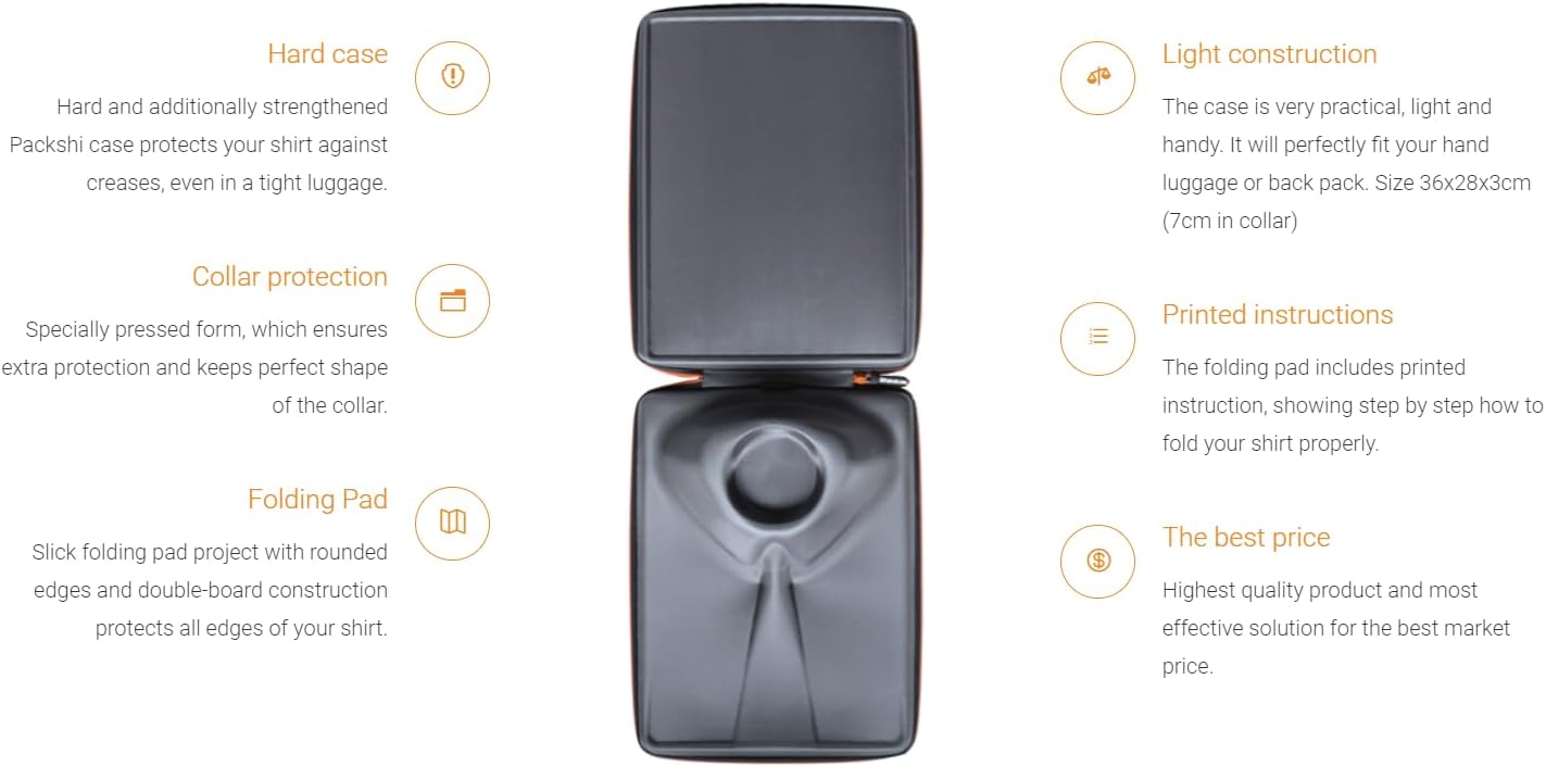• HARTE ETUISCHALE - die einzige Lösung, Ihr Hemd in einem engen Koffer oder Rucksack WIRKLICH zu schützen.