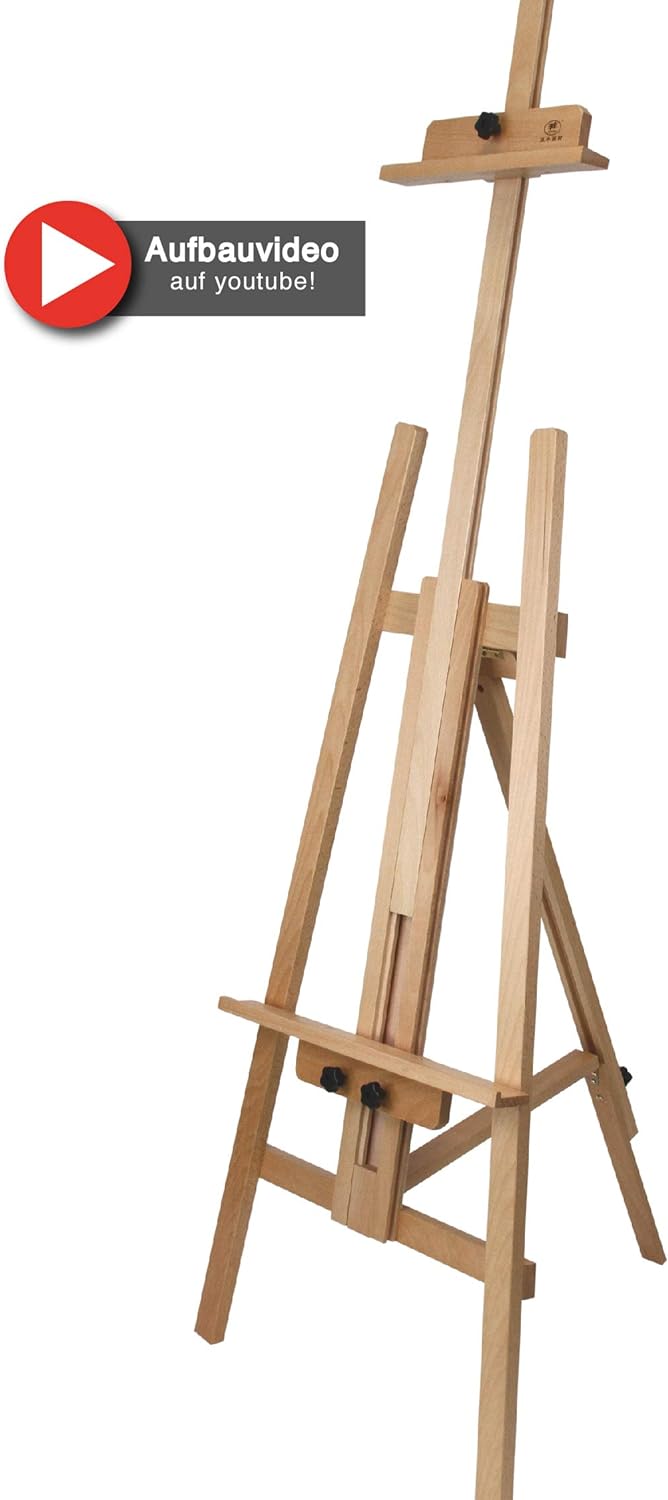 - ✔ STABIL: Das Modell OSLO ist eine solide Dreibein-Staffelei aus Buche-Vollholz vom Fachhändler für Künstlerbedarf. Sie zeichnet sich durch hohe Stabilität und Standfestigkeit aus. Gewicht beträgt ca. 5,0 kg. WICHTIG: Der Keilrahmen liegt dreifach
