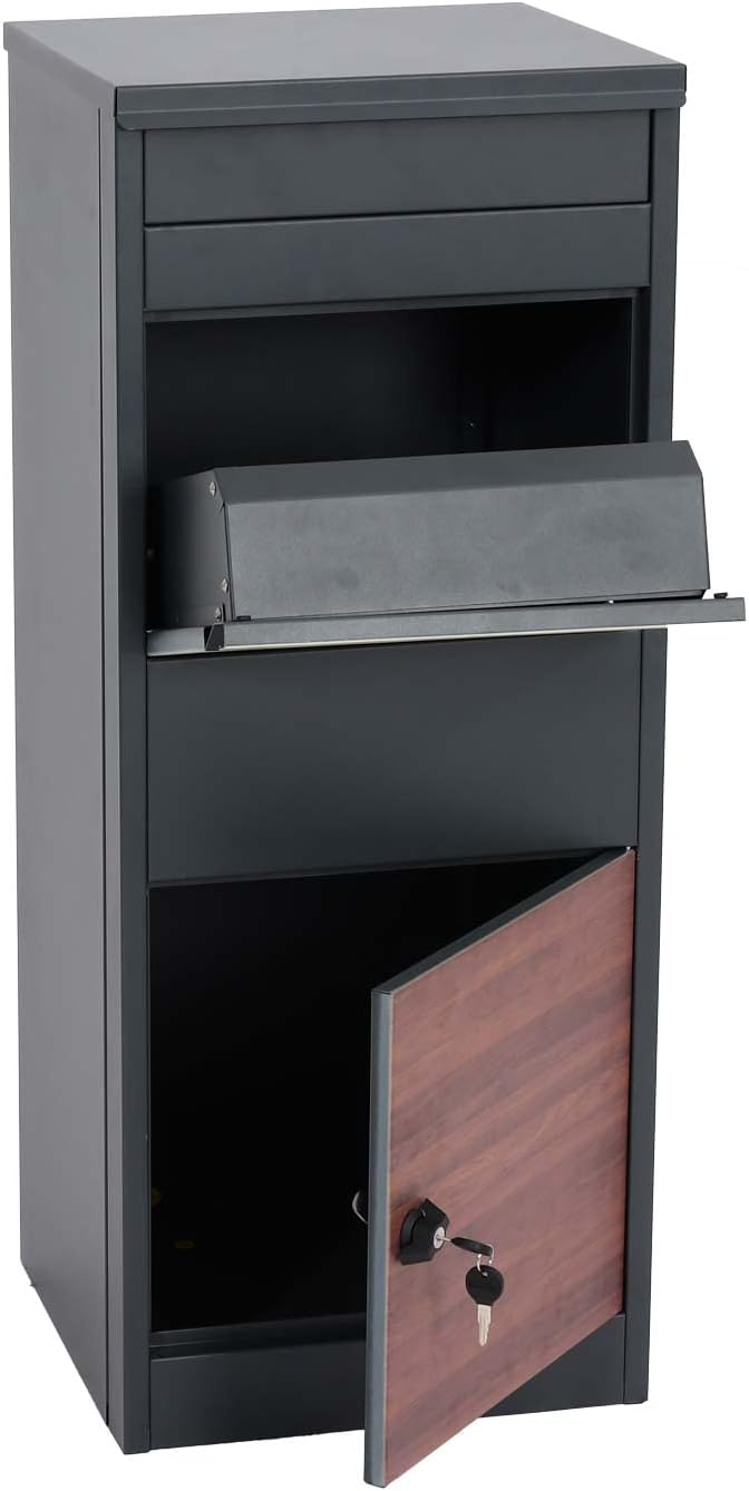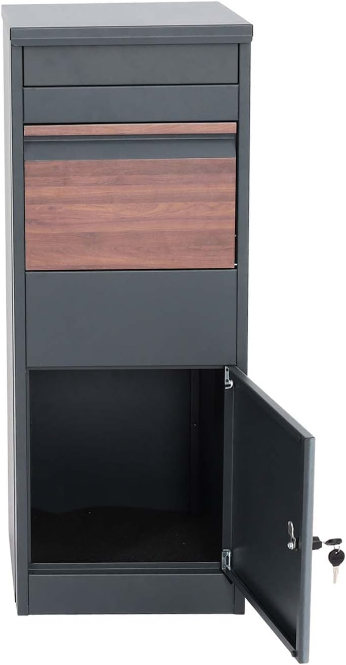 - Sicheres Einwurfsystem | Inkl. zwei Schlüssel | Für die gewerbliche Benutzung geeignet | Grosser Einwurf für kleine bis mittlere Pakete | Mit Briefschlitz | Leichte Postentnahme | Am Boden fixierbar | Gewicht (ca.): 15-23 kg