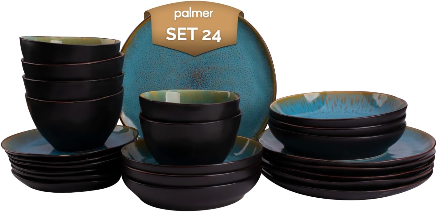Palmer Geschirrset LOTUS 6 Personen, modernes Tafelservice 24-teilig, hochwertiges Kombiservice aus