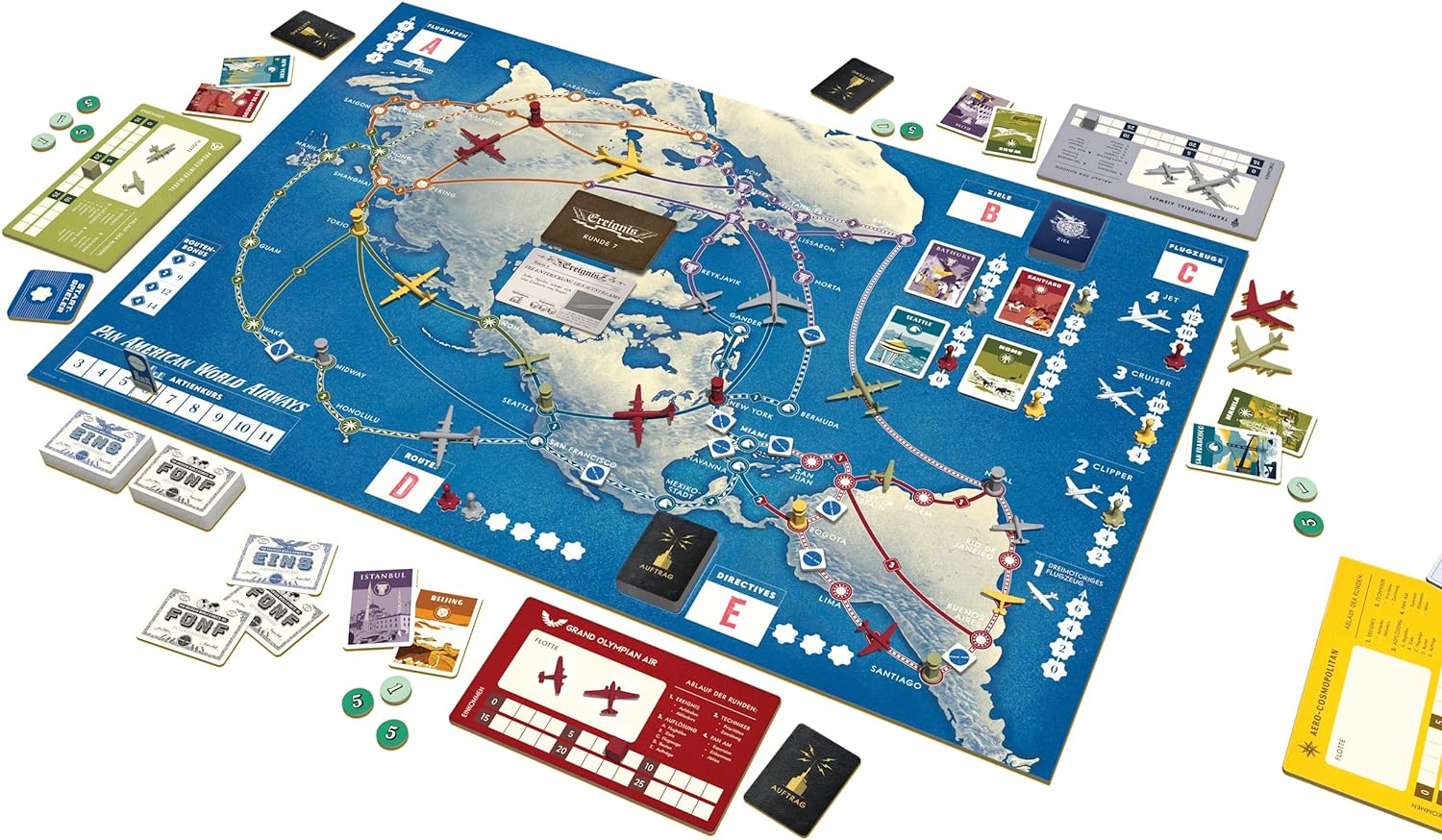 - EINZIGARTIG: Wunderschönes Spielbrett mit einzigartiger Darstellung der weltweiten Flugrouten, einschliesslich 52 Flugzeugminiaturen aus 4 verschiedenen Epochen der Luftfahrt