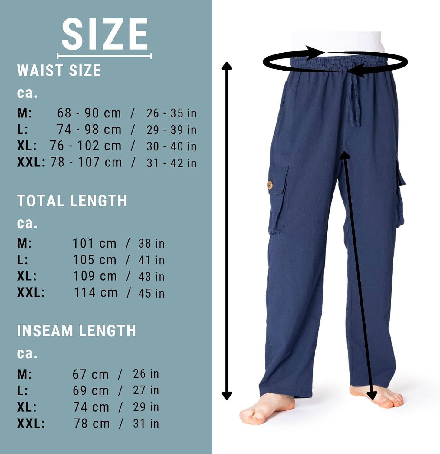 - GRÖSSEN UND FARBEN Wir bieten die Cargohose in den Grössen M, L, XL und XXL – Finde die genauen Massangaben in der Beschreibung oder der Grössengrafik. Farbe: Beige