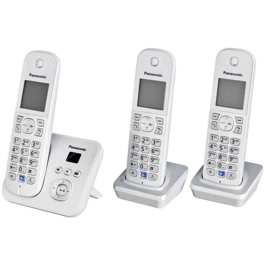 PanasonicKX-TG6823GS DECT Schnurlostelefon mit Anrufbeantworter (3 Mobilteile, strahlungsarm, Eco-Mo