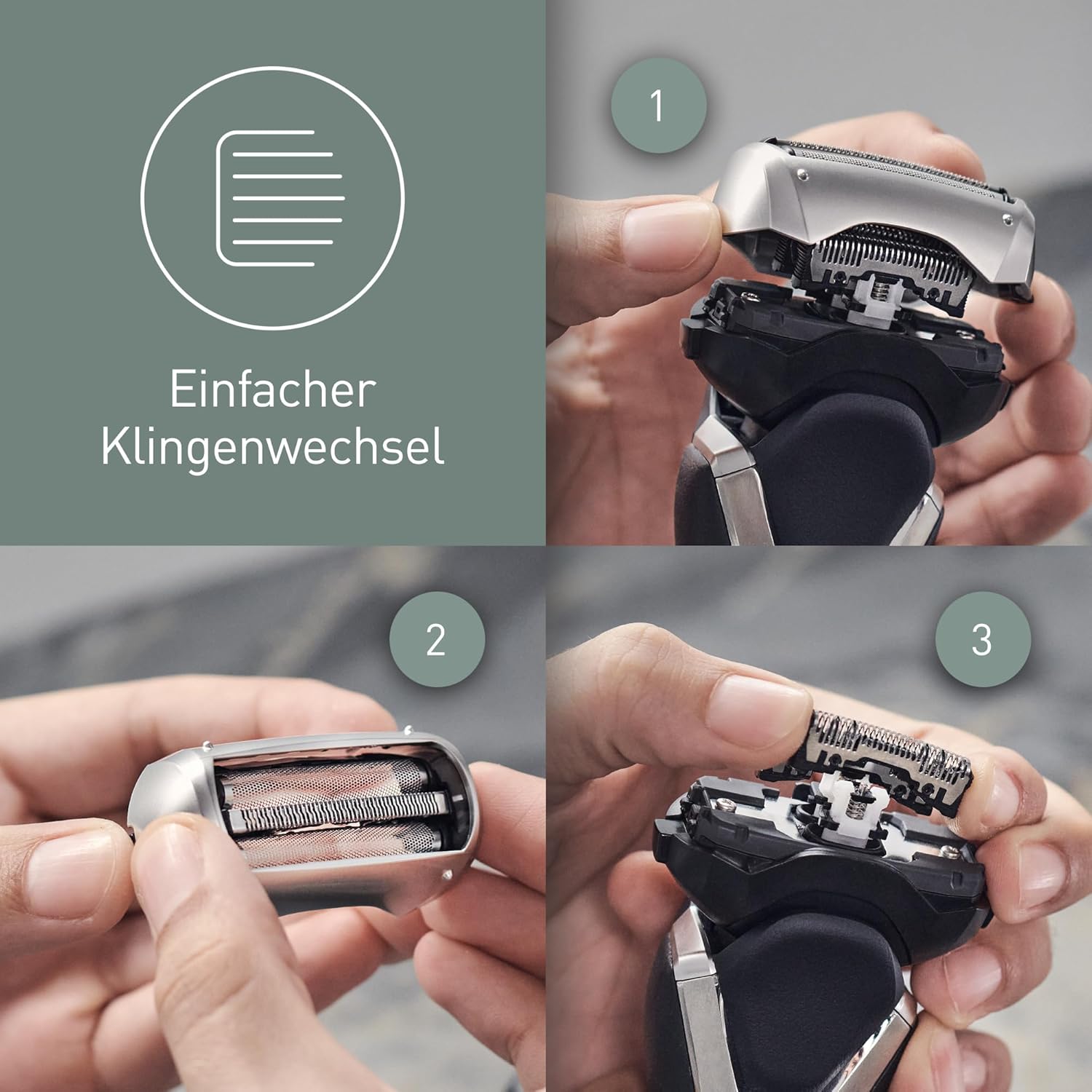 - 3-KLINGEN-SYSTEM: Die 3 Klingen dieses Kombipacks arbeiten synchron und sorgen mit den Scherfolien und einer zentralen Slit-Klinge für eine beeindruckende Schneideffizienz und eine sanfte, gründliche und präzise Rasur.