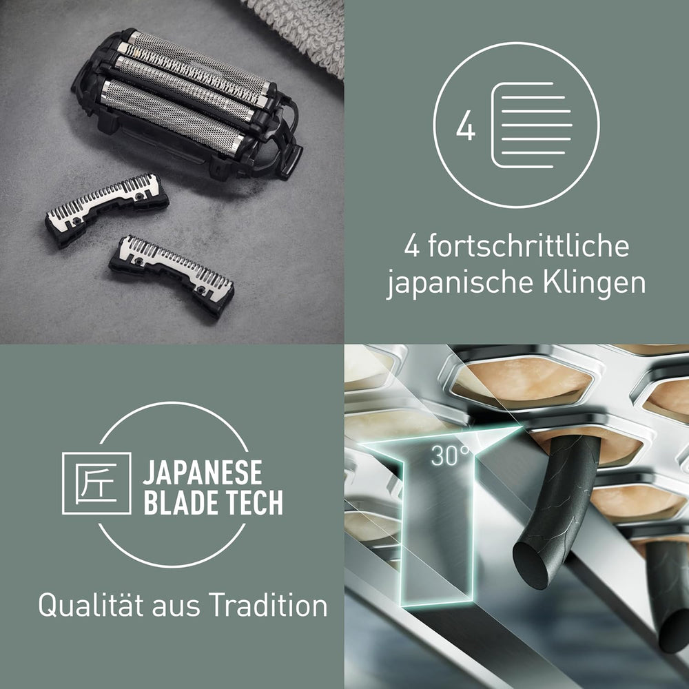 - 4-KLINGEN-SYSTEM: Die 4 Klingen dieses Kombipacks arbeiten harmonisch zusammen, um eine beeindruckende Schneidleistung und eine glatte, gründliche und präzise Rasur zu liefern, einschliesslich einer Slit- und einer Finishing-Folie
