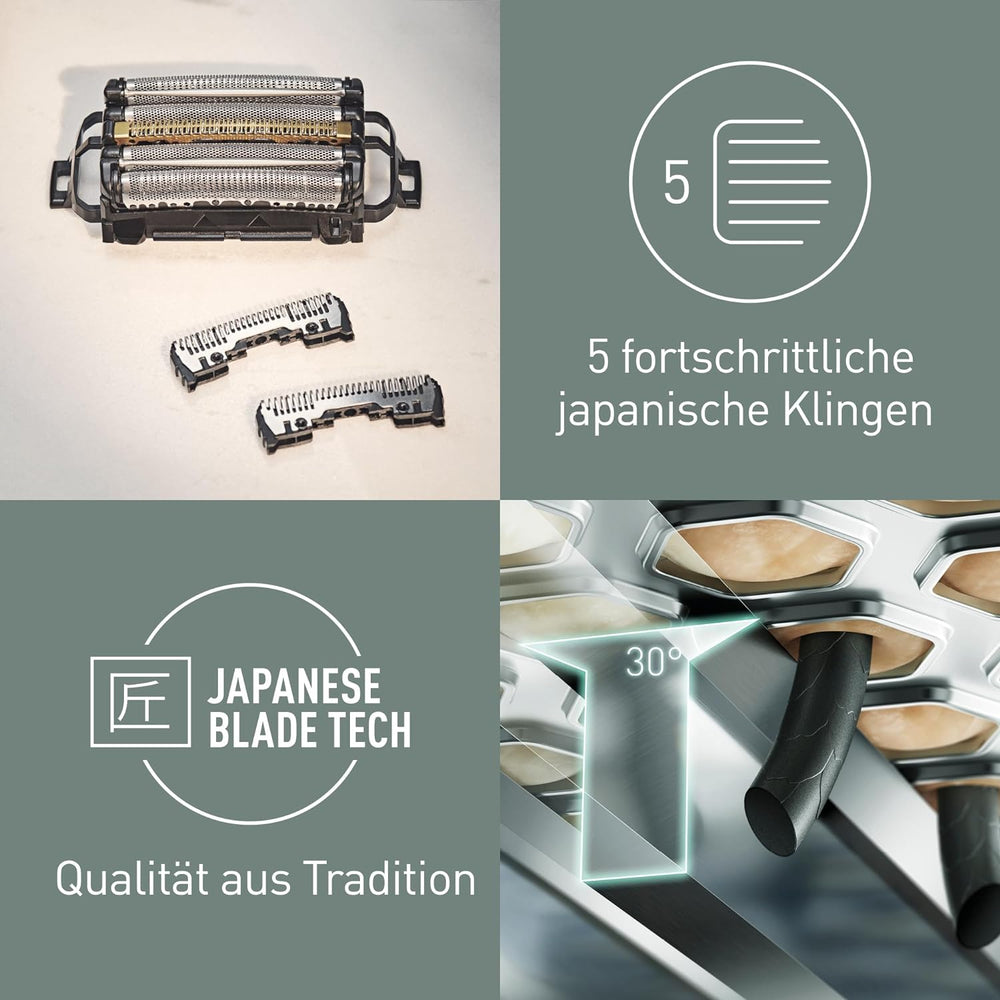 - 5-KLINGEN-SYSTEM: Die 5 Klingen dieses Kombipacks arbeiten synchron, um eine hervorragende Schneidleistung und eine glatte, gründliche und präzise Rasur zu liefern, mit 2 Quick-Lift Scherfolien, 2 Finishing Scherfolien und einem Integralschneider für