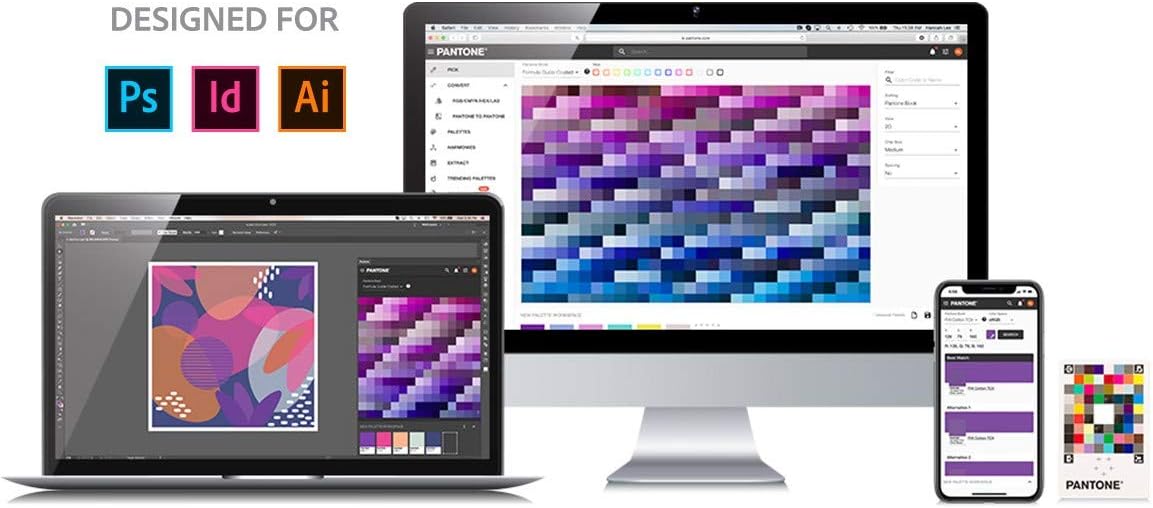 - Farben integriert in Pantone Connect Mobile, Web und Adobe Extension für Palettenerstellung und Gestaltung in Adobe Creative Cloud Tools
