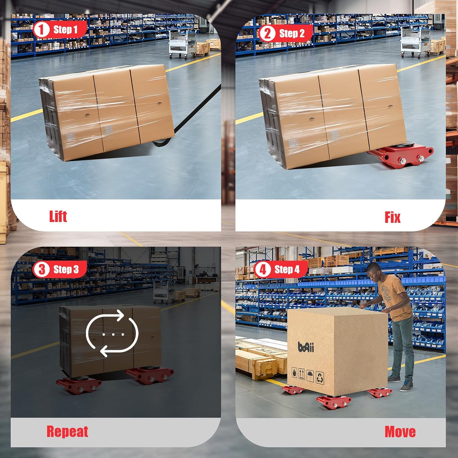 - 👍Einfach zu bedienen: Heben Sie den schweren Gegenstand einfach mit einer Hebemaschine an, und stellen Sie dann das bewegliche Rollschuhrad unter ihn. Wiederholen Sie diesen Vorgang, bis alle Ecken sicher angebracht sind. Zum Schluss schieben Sie die