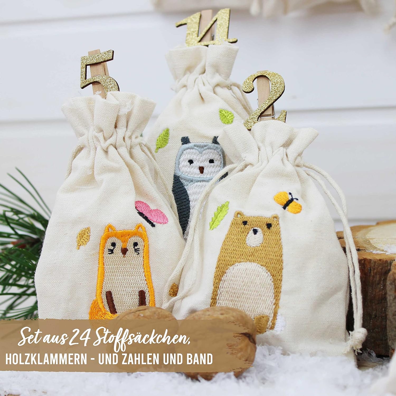 - WIEDERVERWENDBAR: Diesen Kalender kannst du jedes Jahr wieder neu aufhängen und befüllen. Somit schonst du nicht nur die Umwelt, sondern auch deinen Geldbeutel. Durch die angenehme Grösse der 24 Stoffbeutel eignet er sich ideal zum Verpacken von