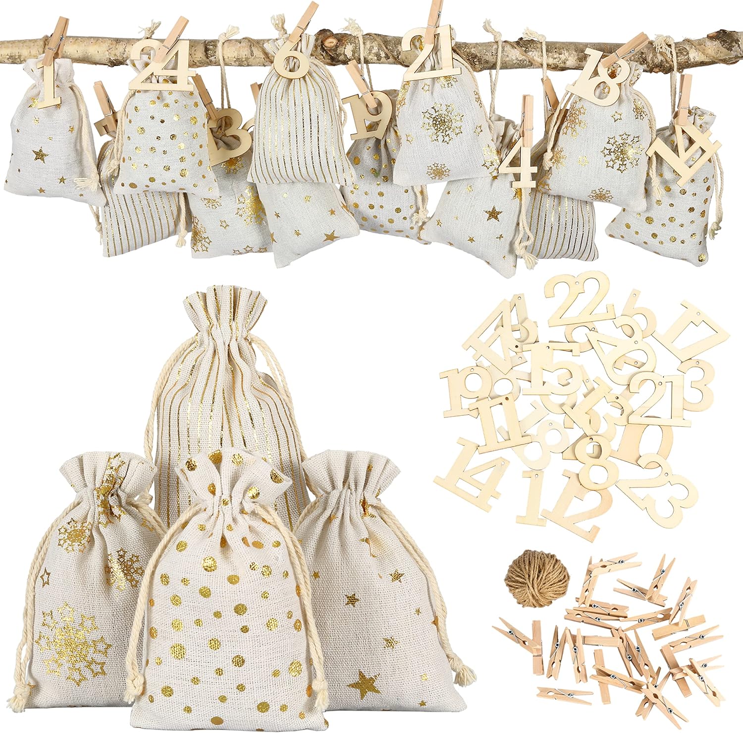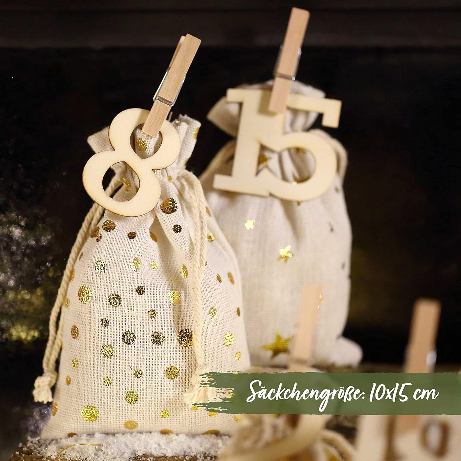 - QUALITATIVES KOMPLETTSET: Du erhältst hier 24 hochwertige Adventskalender Stoffsäckchen zum Befüllen - Stoffbeutel zum dekorieren und verschenken - Geschenksäckchen von Papierdrachen zeichnen sich durch eine hohe Qualität aus: Kein Geruch und angenehme Haptik