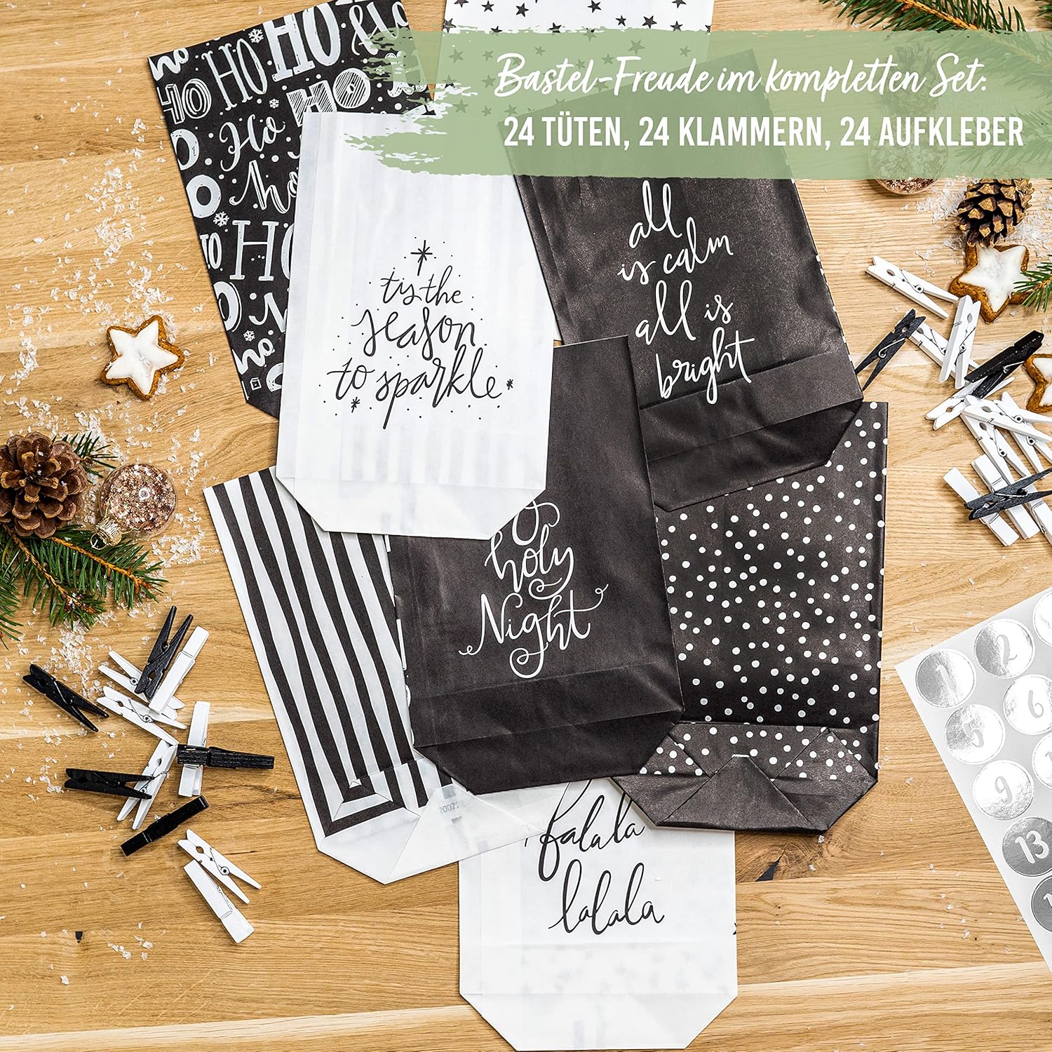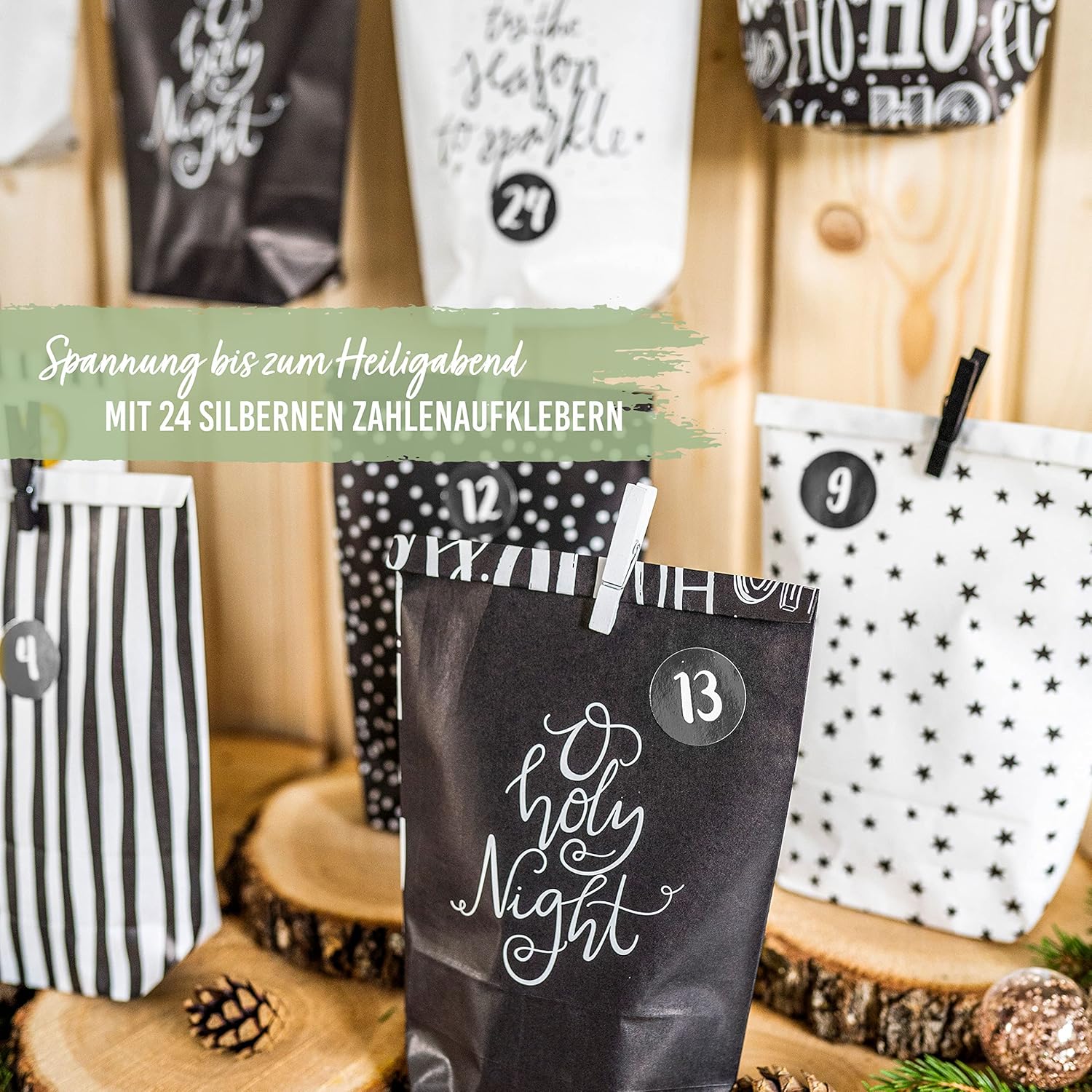 - DER BESONDERE ADVENTSKALENDER: Du erhältst hier einen DIY Weihnachtskalender zum Befüllen mit 24 bedruckten Kraftpapiertüten und 24 Aufkleber Zahlen - Durch die selbstklebenden Motive benötigst du zum Basteln keine weiteren Utensilien wie Schere oder