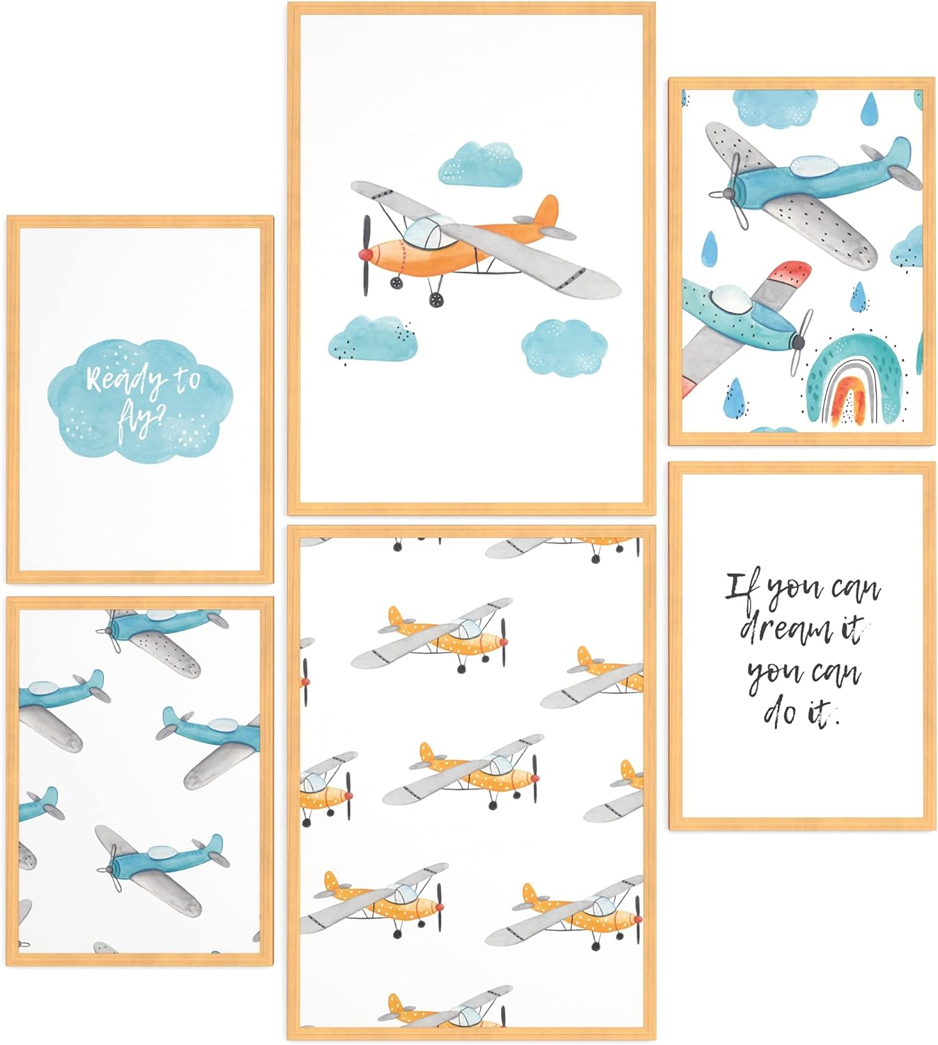 Variante: 2x A3 | 4x A4 in Holzrahmen (Natur) Set Flugzeuge