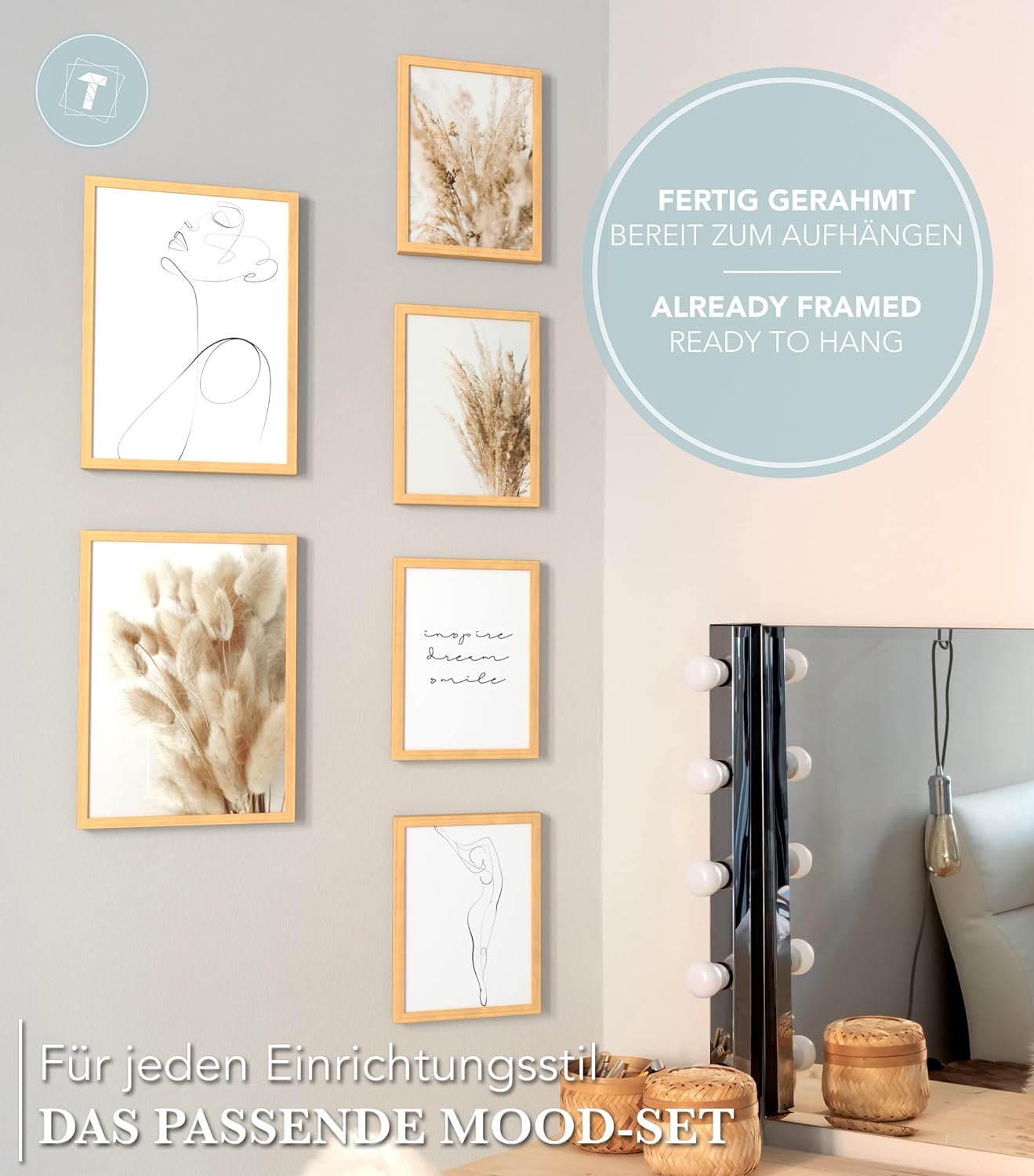 - 🌟 FERTIG GERAHMT STATT NUR „BILDER SET MIT RAHMEN“ Dein Vorteil bei uns: wir rahmen deine bestellten Kunstdrucke fertig ein. Wir bieten Echtholzrahmen mit leichtem, bruchsicherem Acrylglas von A5 bis A3 an.