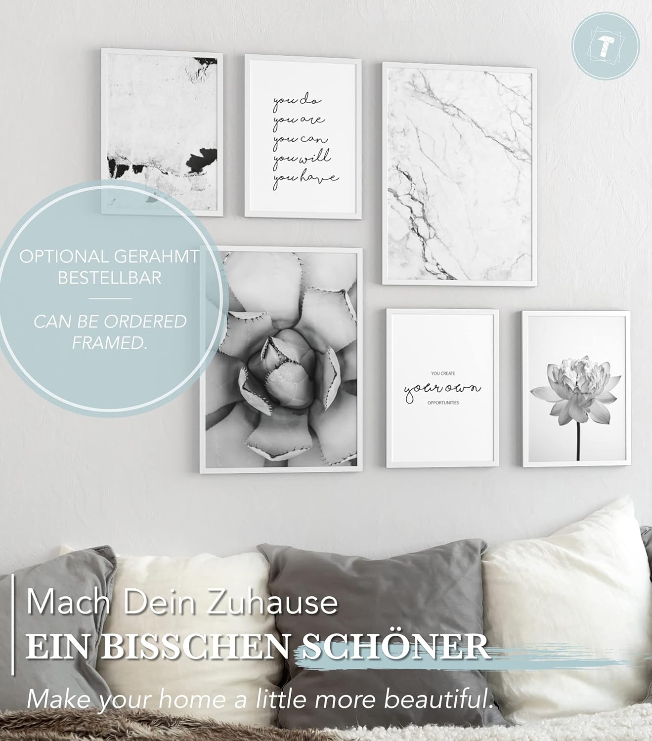 - 🌟 GROSSE AUSWAHL Poster Set mit Sprüchen & Zitaten für jeden Raum (Wohnzimmer Bilder, Flur Bilder, Küchen Bilder) und viele Themen (u.a. Boho, Vintage, Schwarz-weiss, Landschaft & Abstraktion).