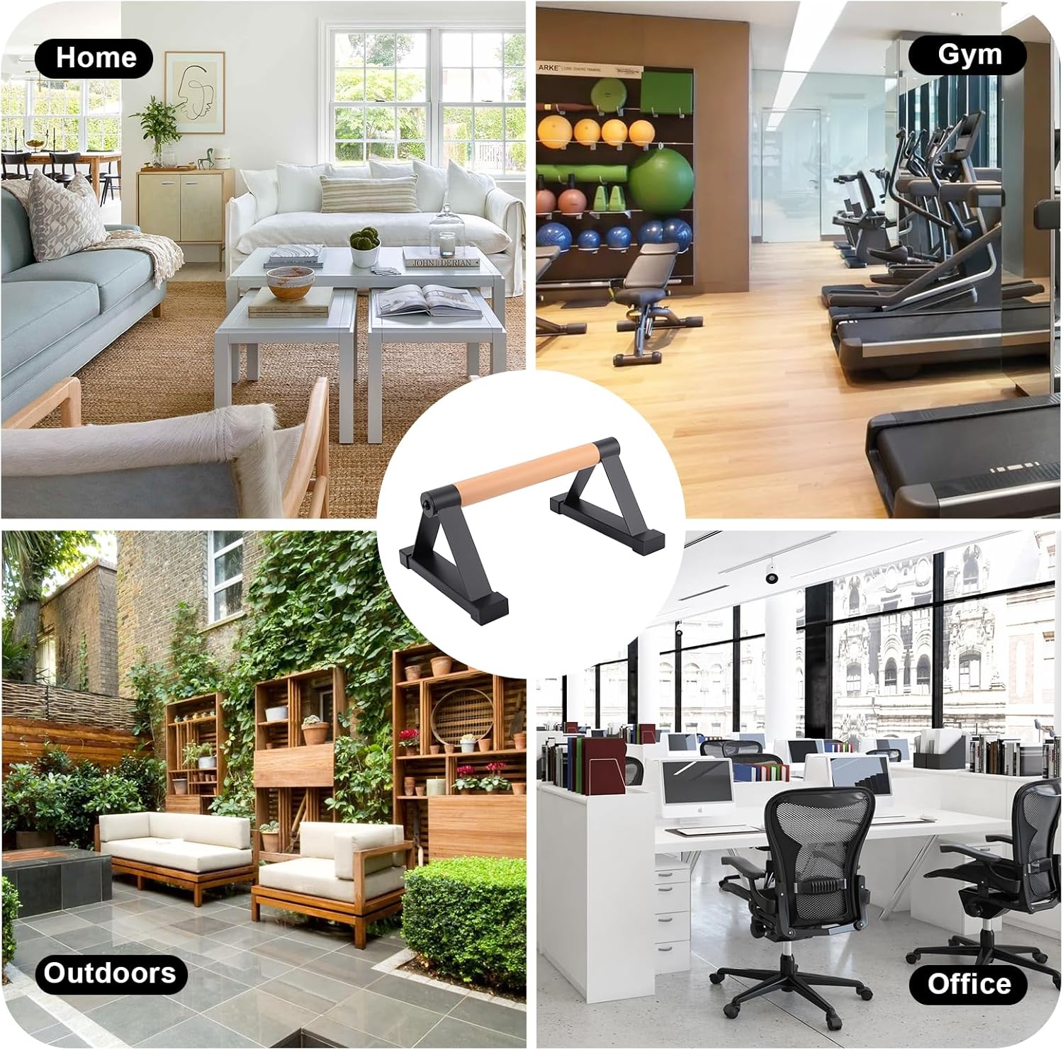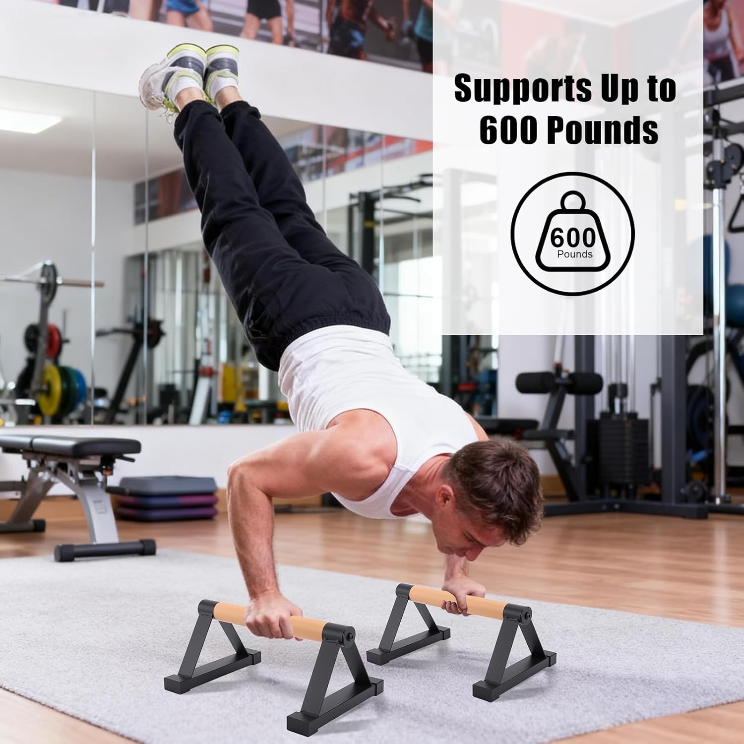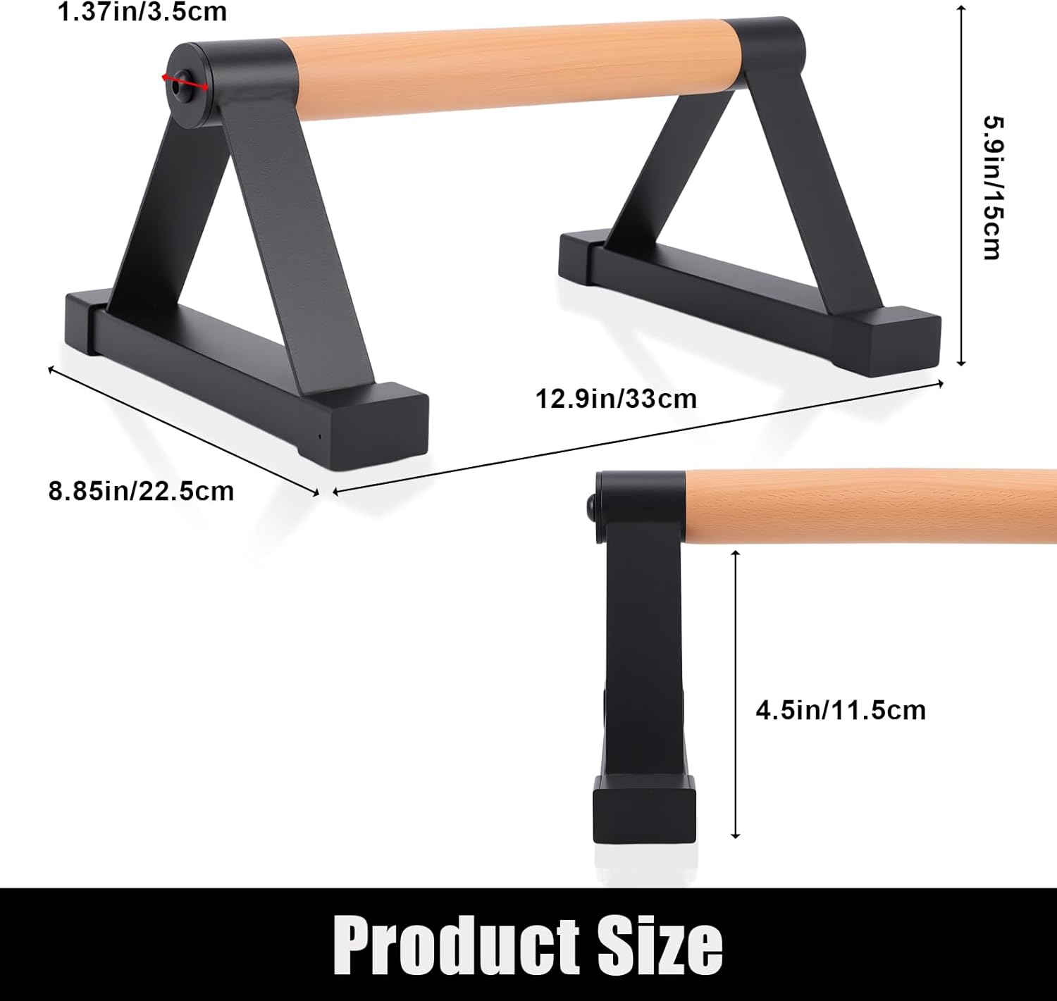 Parallettes Stäbe,Massivholz mit stabilem Metall Dreieck Halterung Push up Bars,Anti-Rutsch Handstan