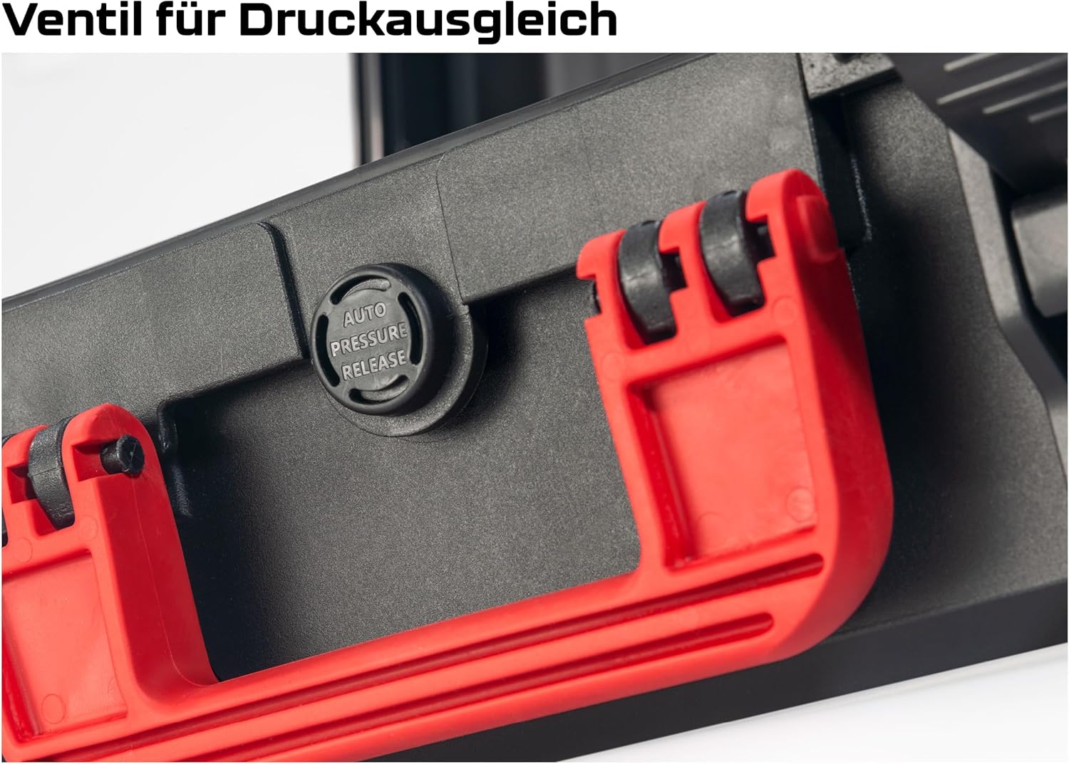 - Die extra starke Wand aus Polypropylen macht ihn nicht nur extrem stabil; auch Wasser, Staub und Luft haben dank einer umlaufenden Neoprendichtung keine Chance einzudringen; gleichzeitig sorgt ein Ventil für Druckausgleich