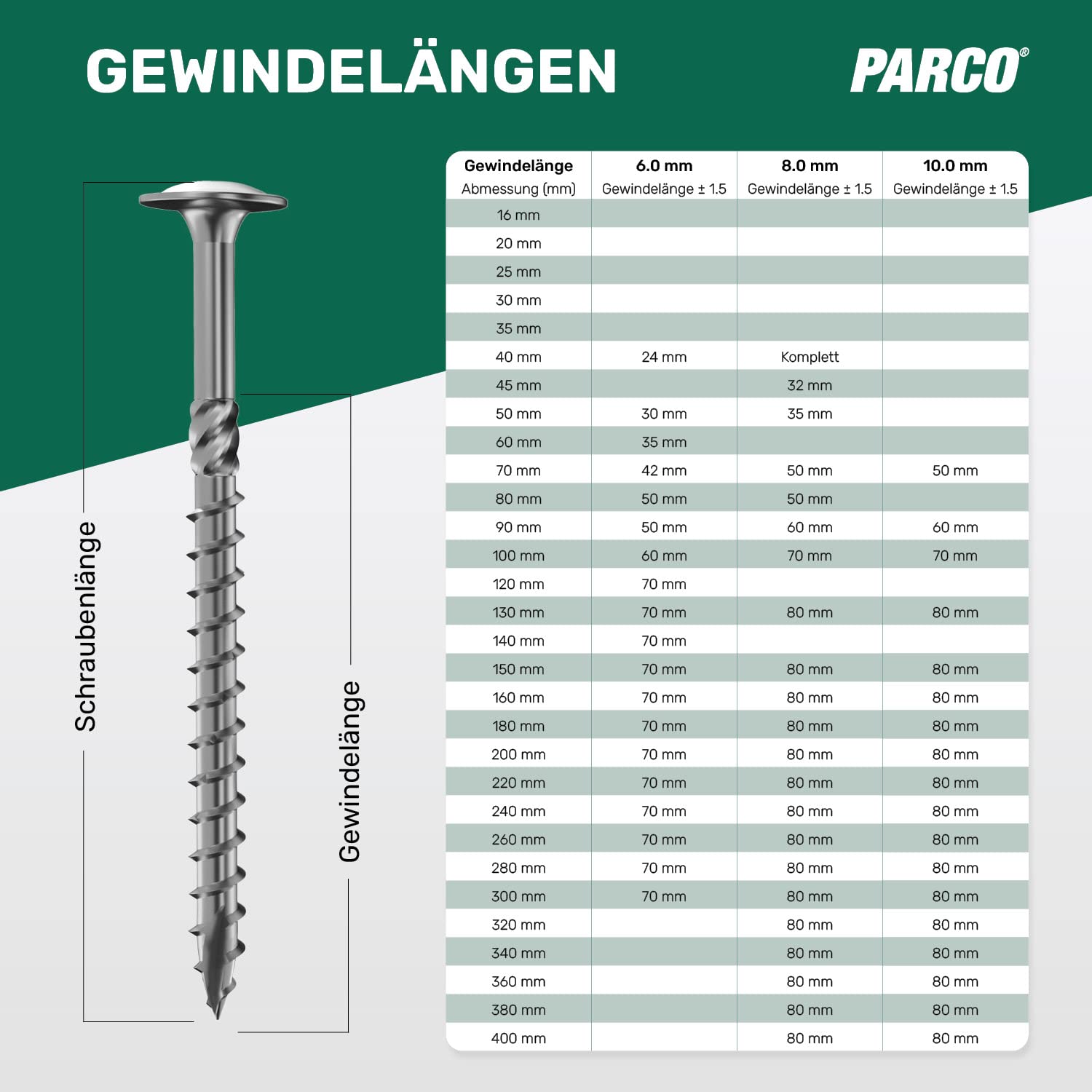 - Dank der Schaftfräse, also einem speziellen Reibeteil oberhalb des Gewindes verringert sich der Eindrehwiderstand, das Loch wird grösser und dadurch wird Kraftaufwand kleiner. Auch das Zusammenziehen von Holzbauteilen ist dadurch wesentlich besser