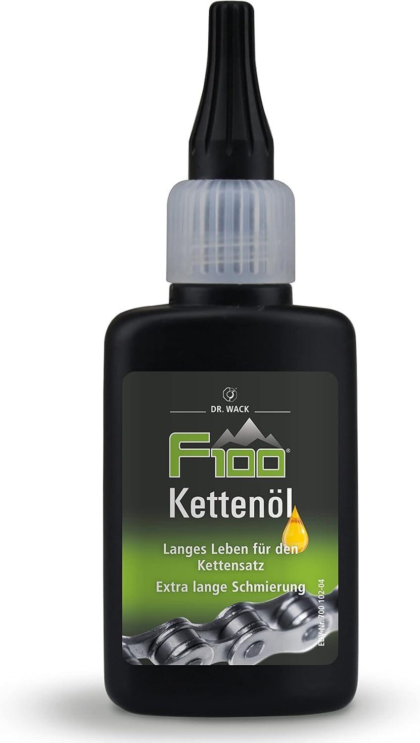 - Produkt 2: F100 KETTENÖL: Für Ihr Fahrrad nur das Beste! Mit der neuen Formel unseres bewährten F100 Fahrradketten-Öls erzielen Sie deutlich weniger Reibung und Verschleiss bei höchster Materialverträglichkeit. Mit Top Korrosions- und
