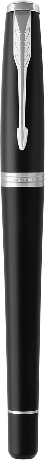 - Die mattschwarze Lackierung lässt die Oberfläche leicht pudrig wirken und wird durch Chromzierteile und einen Clip mit dem charakteristischen Parker-Pfeil ergänzt.
