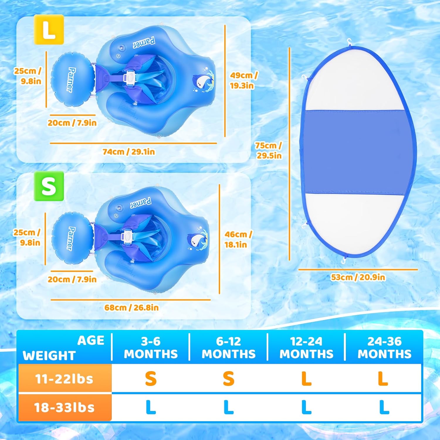 - Empfohlene Grösse : Empfohlen für Gewicht 11-22lbs Alter 3-12Monate(Grösse S); 12-36 Monate (Grösse L); 18-33 lbs 6 - 36 Monate (Grösse L). Attention : Das baby schwimmreifen ist nicht lebensrettendes Zubehör, es ist erforderlich, von einer