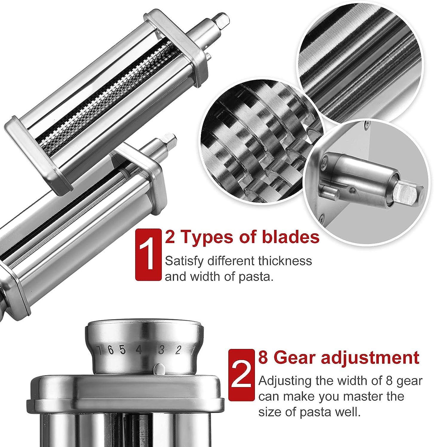 - 🍝 【Geeignet für KitchenAid Standmixer】Dieser Nudelaufsatz passt auf alle KitchenAid Standmixer, Nudelwalze verwandelt den Teig sehr glatt in dünne und weiche Nudeln, und gibt uns Komfort und Leichtigkeit für hausgemachte Pasta, hilft Ihnen, authentische frische Nudeln schnell und einfach zu Hause zu machen.