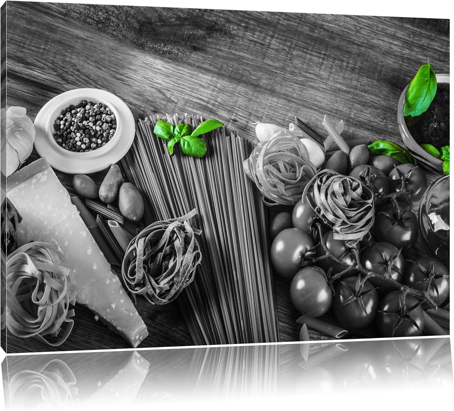 Pasta mit frischen Gewürzen schwarz/weiss Format: 100x70 auf Leinwand, XXL riesige Bilder fertig ger