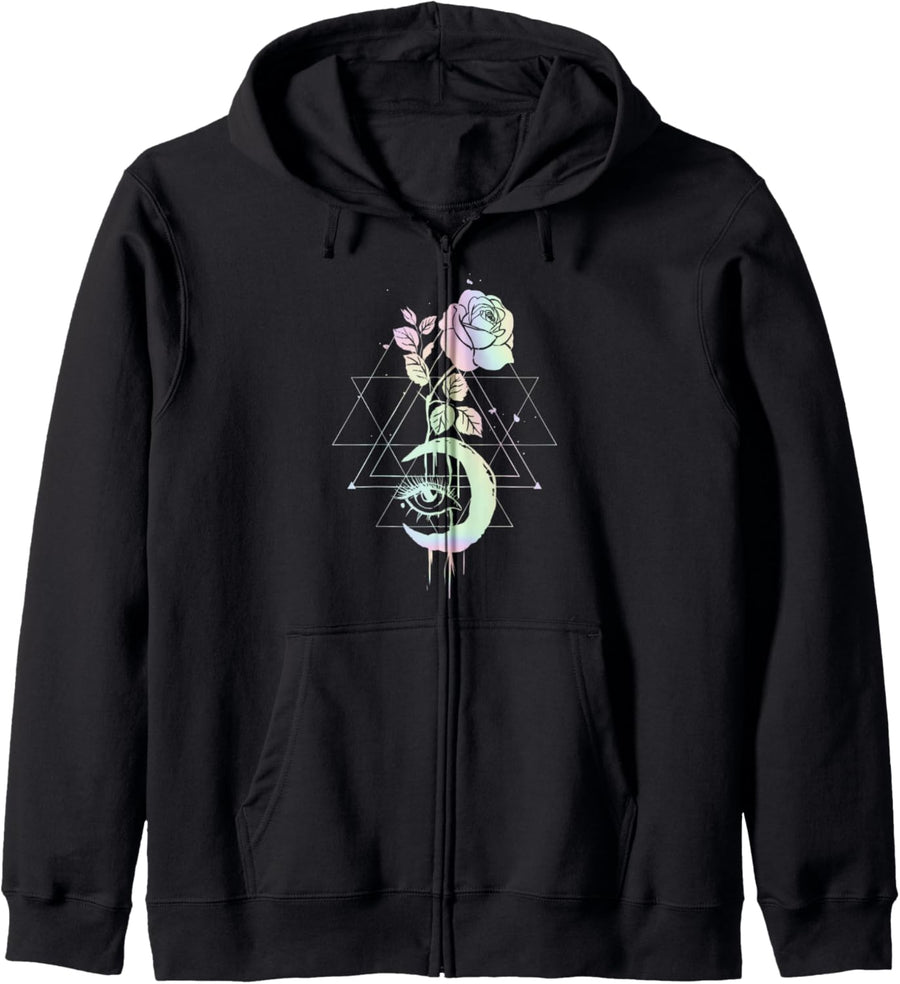 PRODUKTBESCHREIBUNGEN Pastell Mond - Rosen und Dreiecke Design ideal für Vaporwave Fans und Astrologie-Enthusiasten. Retro Design mit einer pastellfarbenen Illustration mit Rosen, Dreiecken, einem Mond und einem Auge. Dieses Pastell Mond - Rosen und Dreiecke - Pastel Goth Kleidungsstück ist von Mond Ästhetische Retro Geschenke erstellt. Mehr