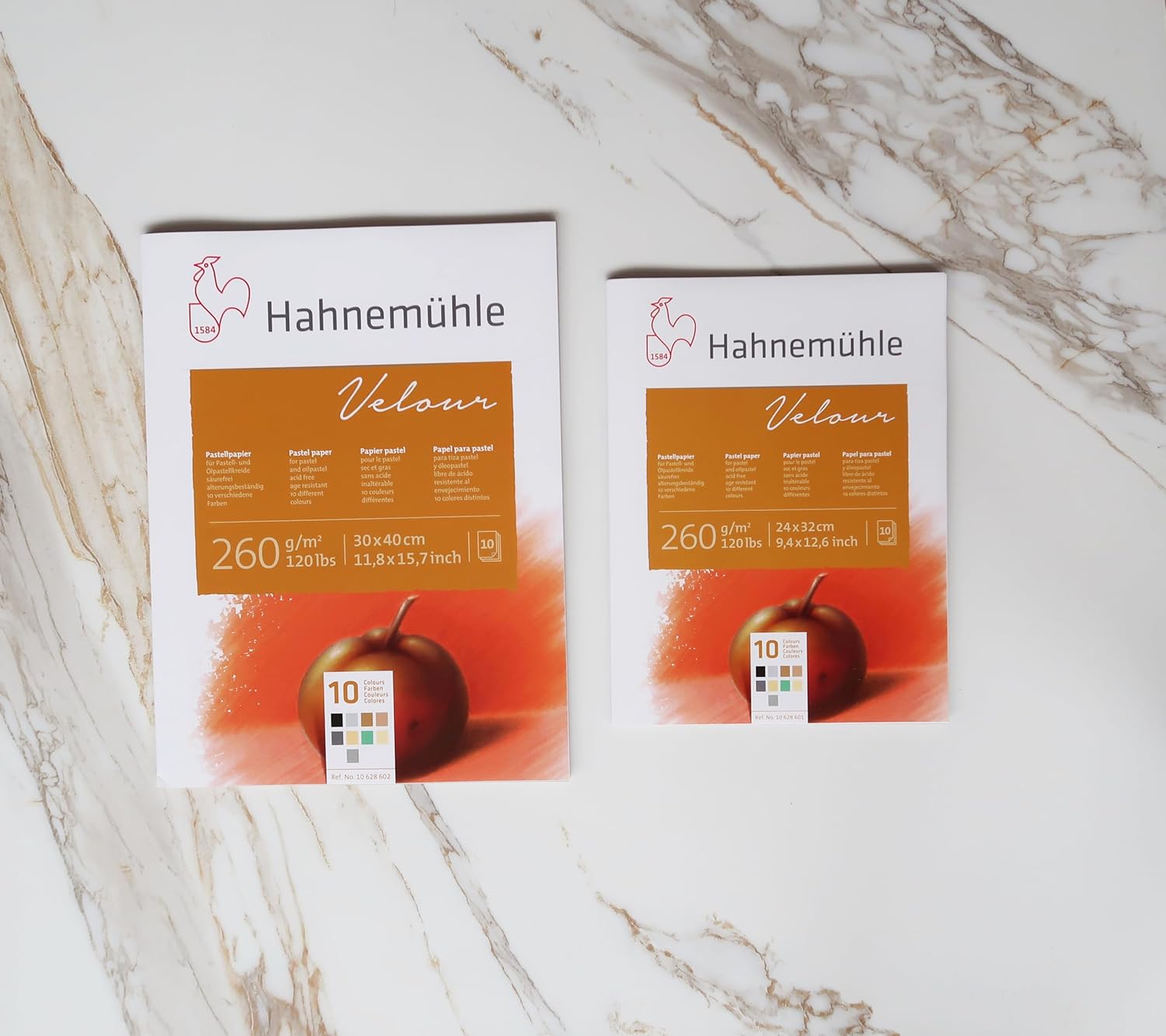 - Weiches, velourbeschichtetes Papier lässt Pastellkreiden natürlich haften