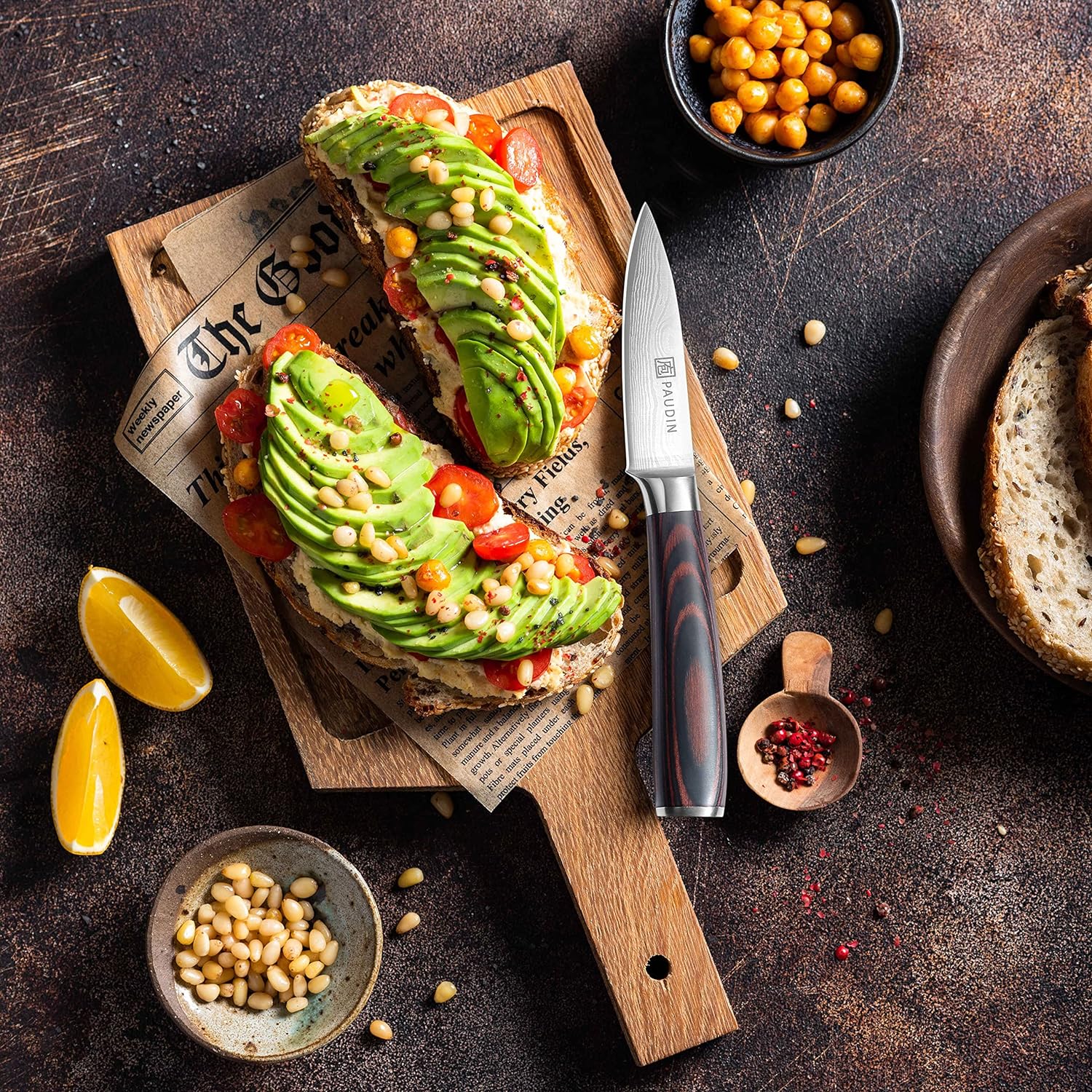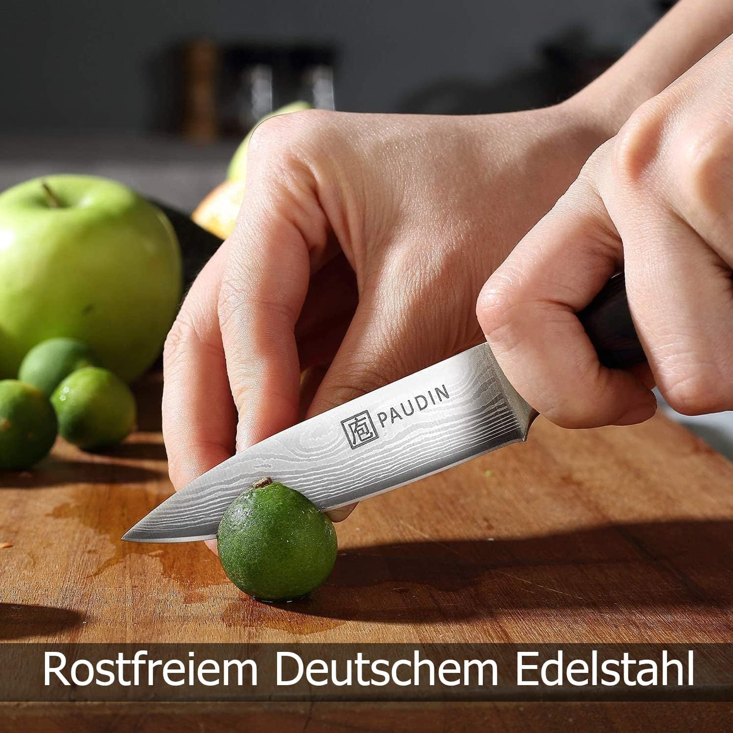 - Hervorragendes Kochmesser: Das Schälmesser kann Ihre täglichen Küchenarbeiten problemlos erledigen. Ideal für Schälen und Schnitzen oder für komplizierte Arbeiten. Entwickelt für kleine Küchenaufgaben wie Formen, Garnieren, Hacken Trimmen und Zerkleinern von Gemüse und Obst.