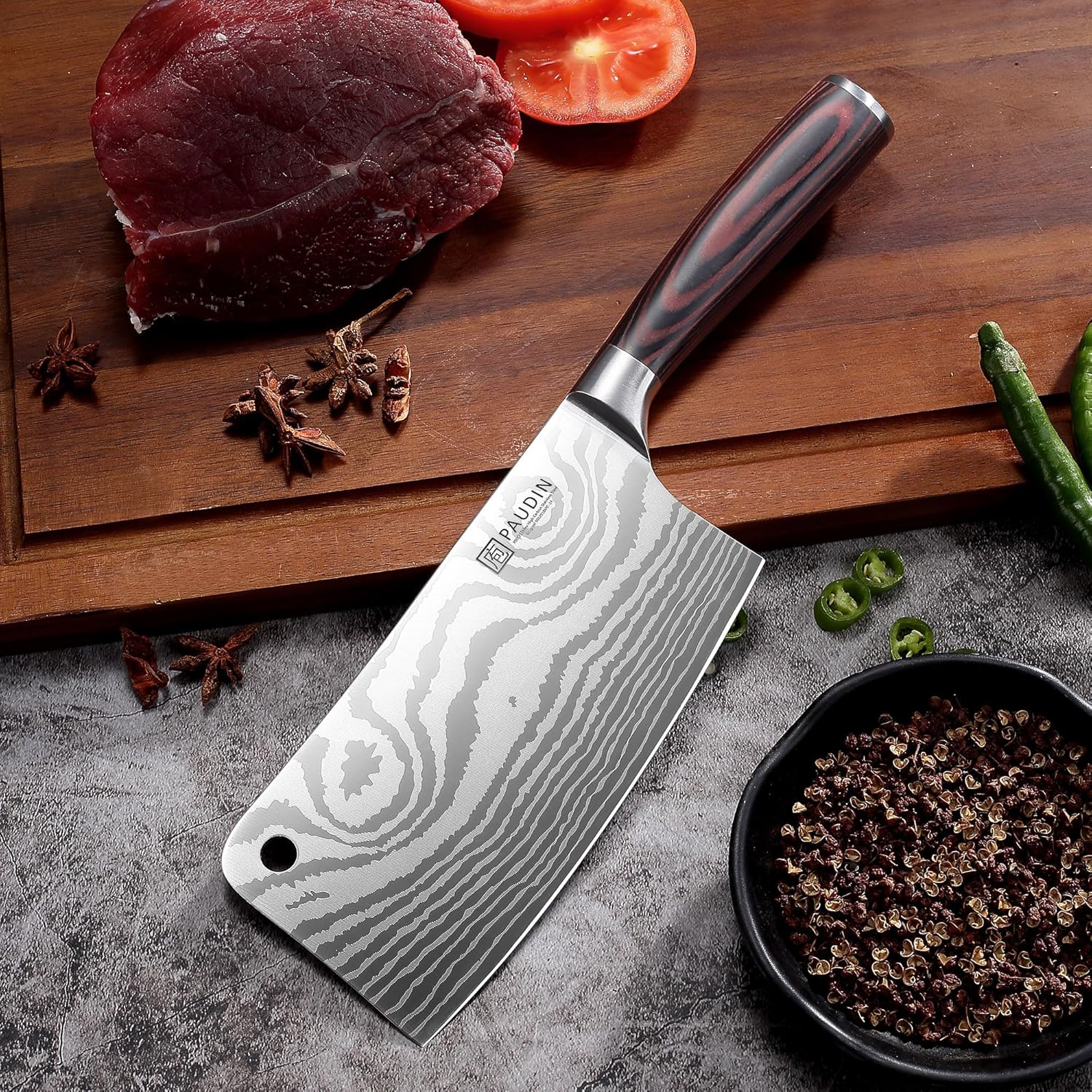 - Kohlenstoffreicher Edelstahl: PAUDIN Hackmesser besteht aus hochwertigem deutschem Edelstahl mit hohem Kohlenstoffgehalt. Es gewährleisten das Messer eine hervorragende Leistung. Der hohe Kohlenstoffgehalt macht das Kochmesser stärker und haltbarer und hat eine länger anhaltende Schärfe. (Aufgrund des hohen Kohlenstoffgehalts bitte nach Gebrauch waschen und trocknen).