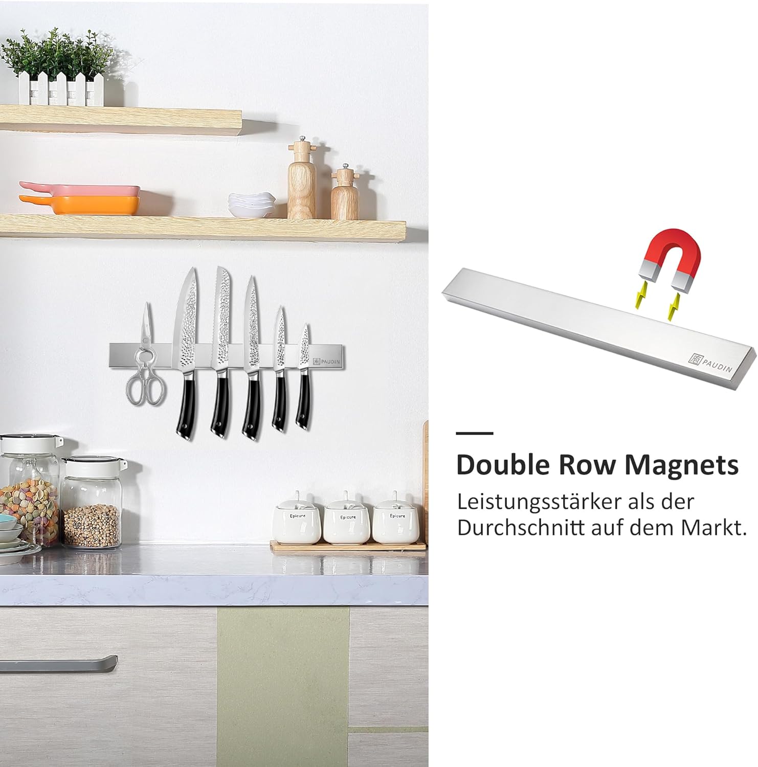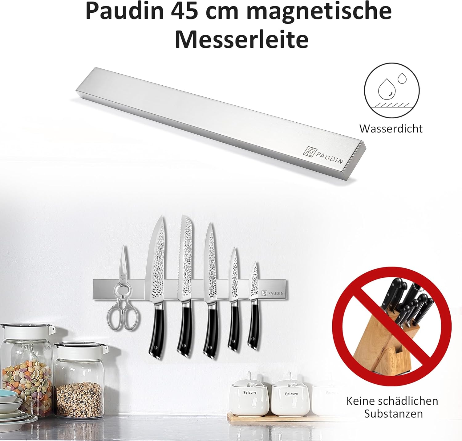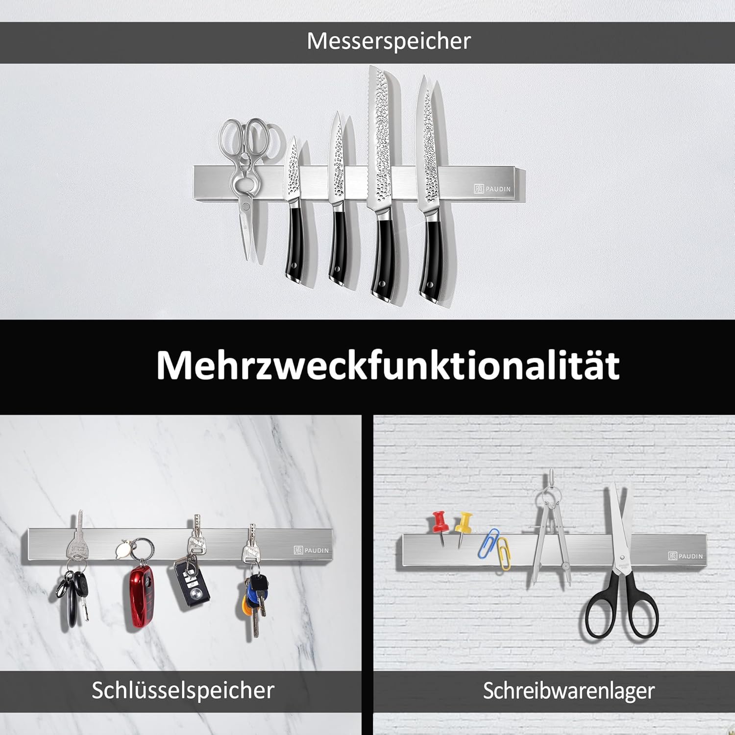 - Alles in Ordnung in der Küche: Die magnetische Küchenmesserleiste für die Wand wurde entwickelt, um fast alles aus Metall zu halten. Der PAUDIN Magnetleiste hat eine Länge von 45 cm und bietet somit Platz für mehr Messer als die meisten anderen