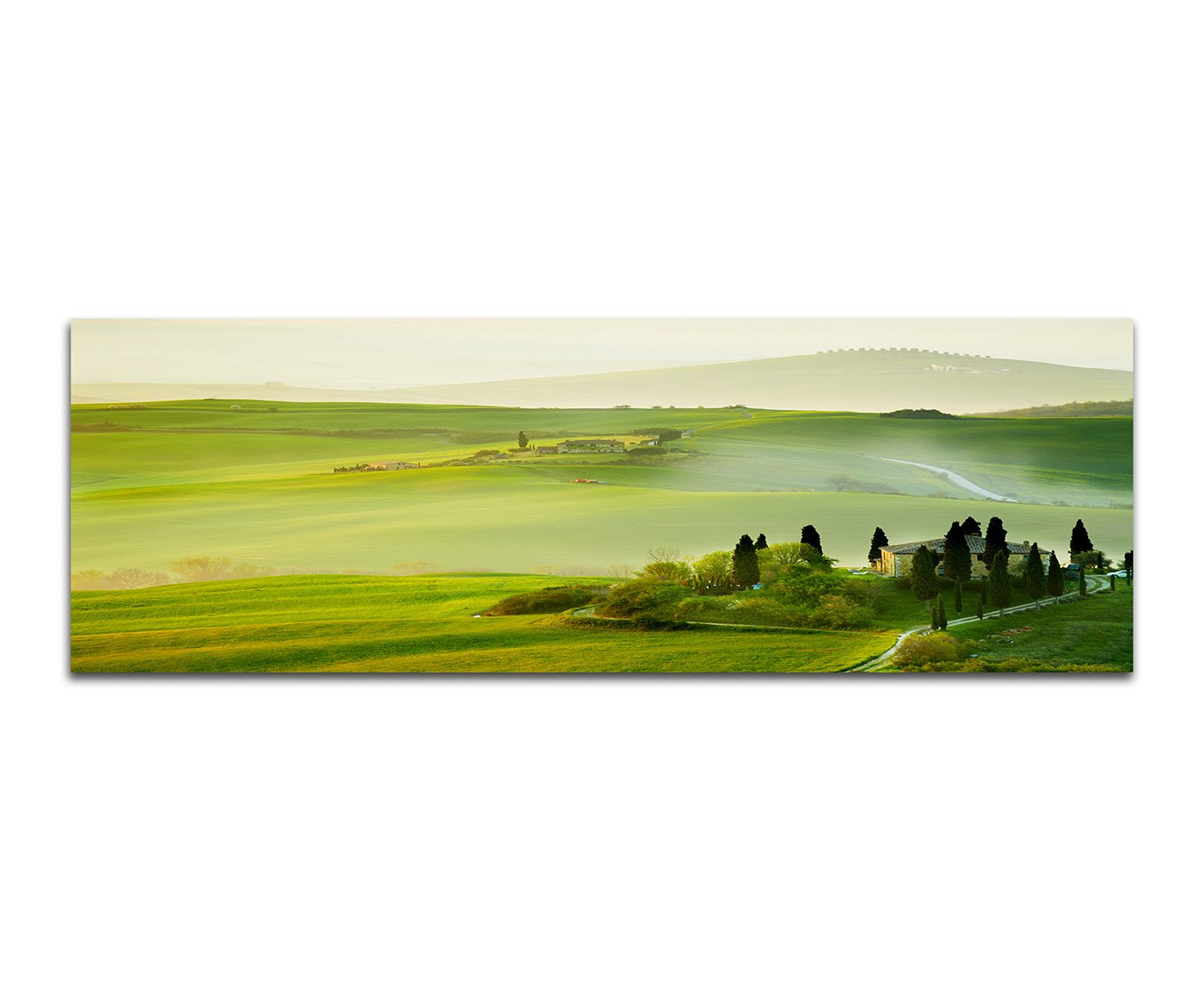 Paul Sinus Art Panoramabild auf Leinwand und Keilrahmen 150x50cm Toskana Landschaft Wiesen Hügel Häu