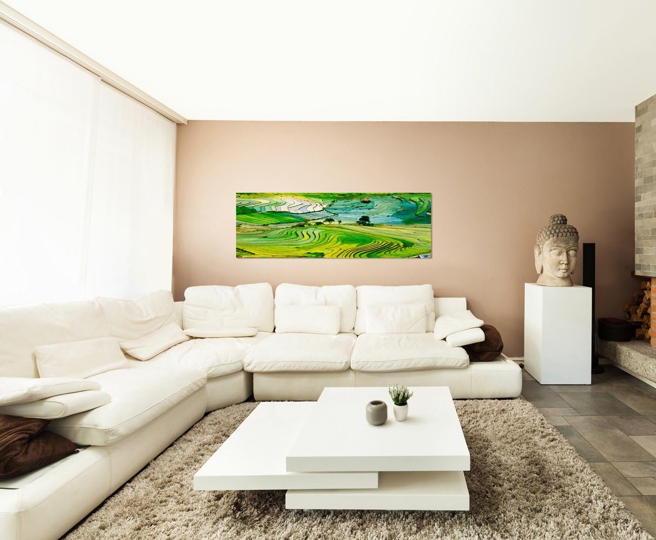Paul Sinus Art Panoramabild auf Leinwand und Keilrahmen 150x50cm Vietnam Landschaft Reisfelder Terra