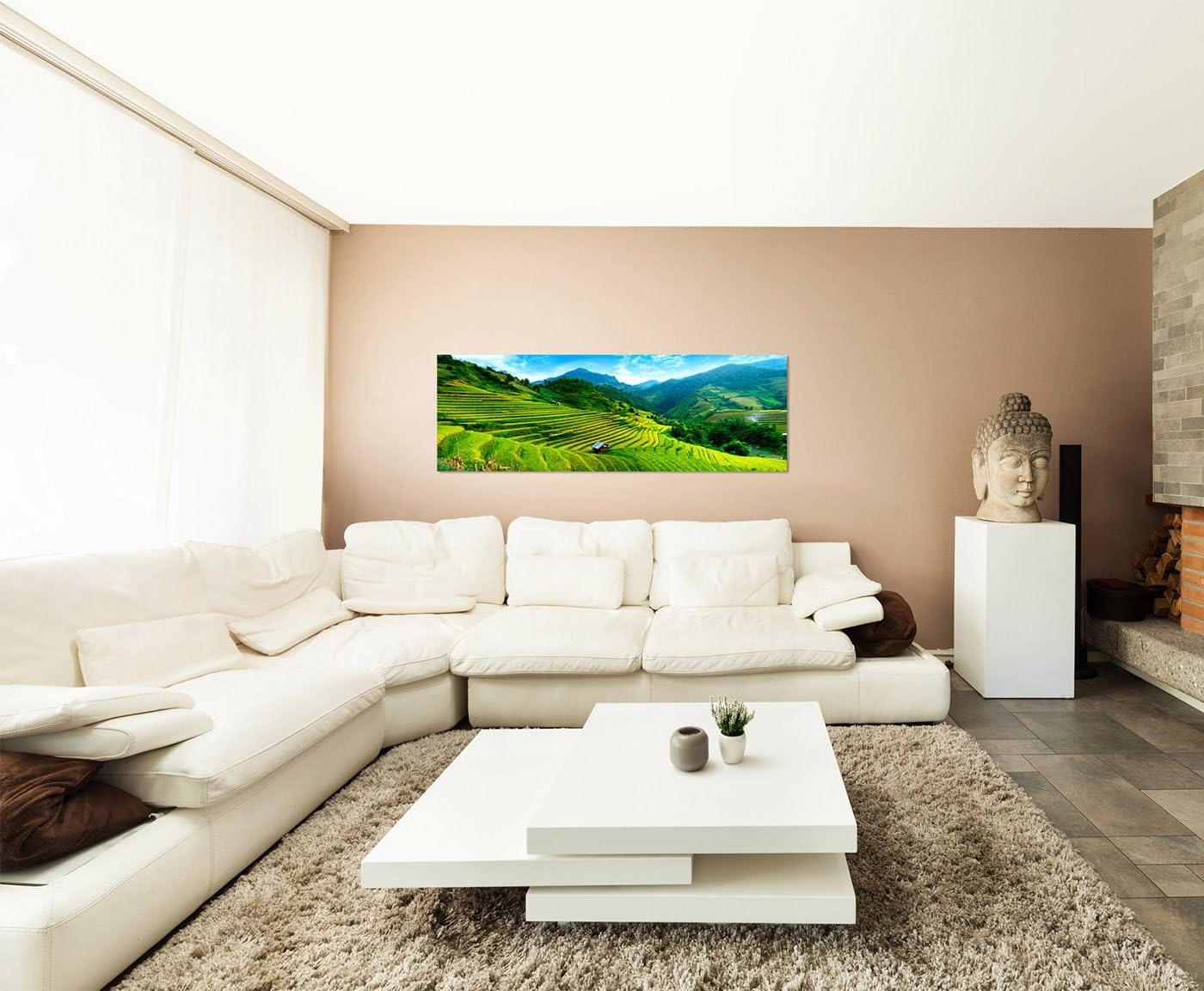 Paul Sinus Art Panoramabild auf Leinwand und Keilrahmen 150x50cm Vietnam Reisfelder Terrassen Berge