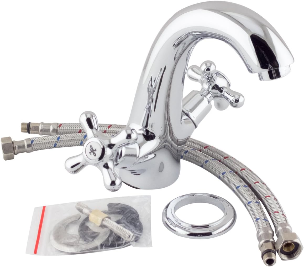 PaulGurkes Design Armatur Nostalgie Retro Waschtischarmatur Waschtischbatterie Wasserhahn Kreuzgriff