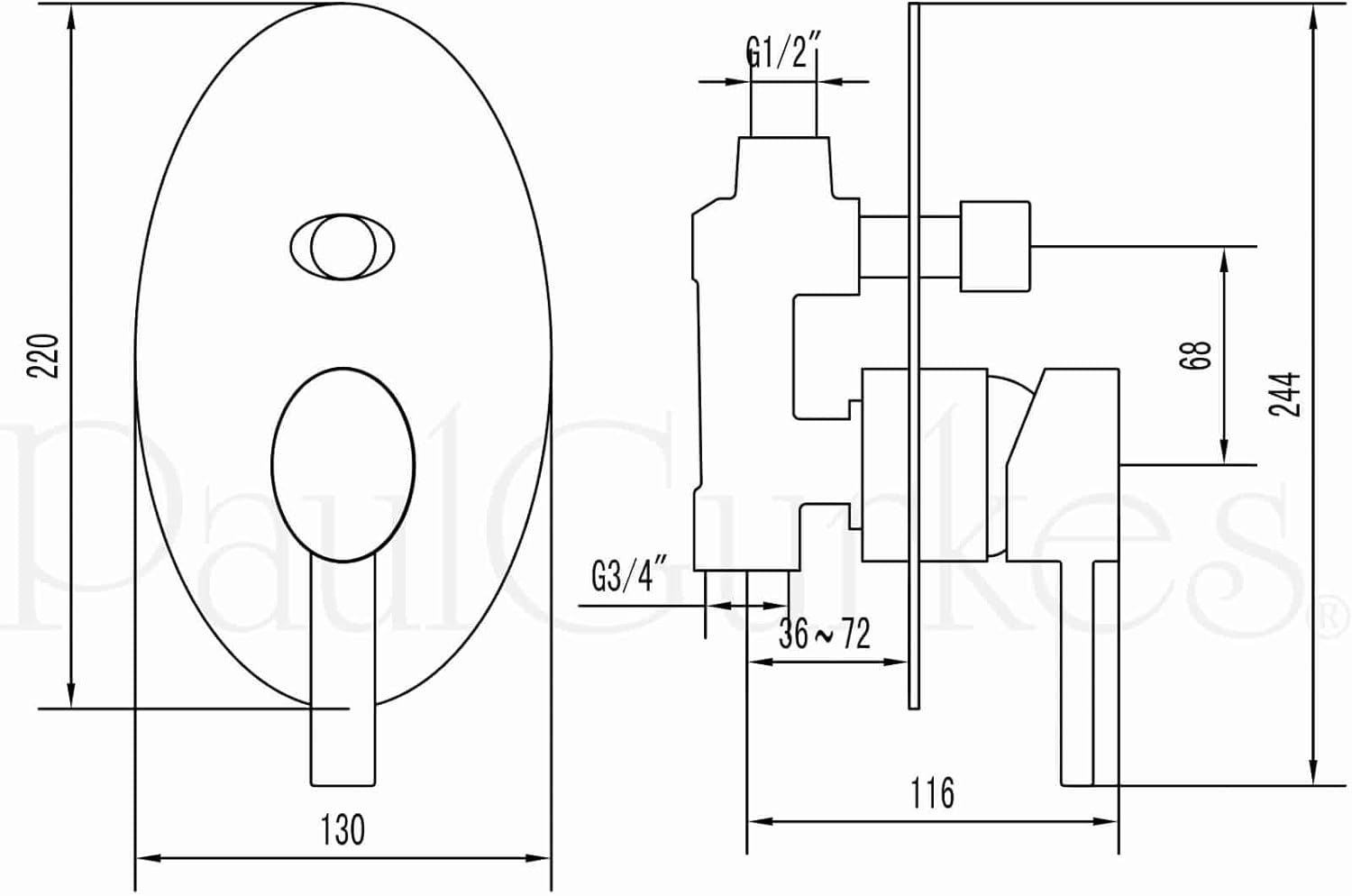 - PaulGurkes hochwertige Regenwalddusche mit Kopfbrause und Handbrause für die Unterputzmontage aus massivem Messing.