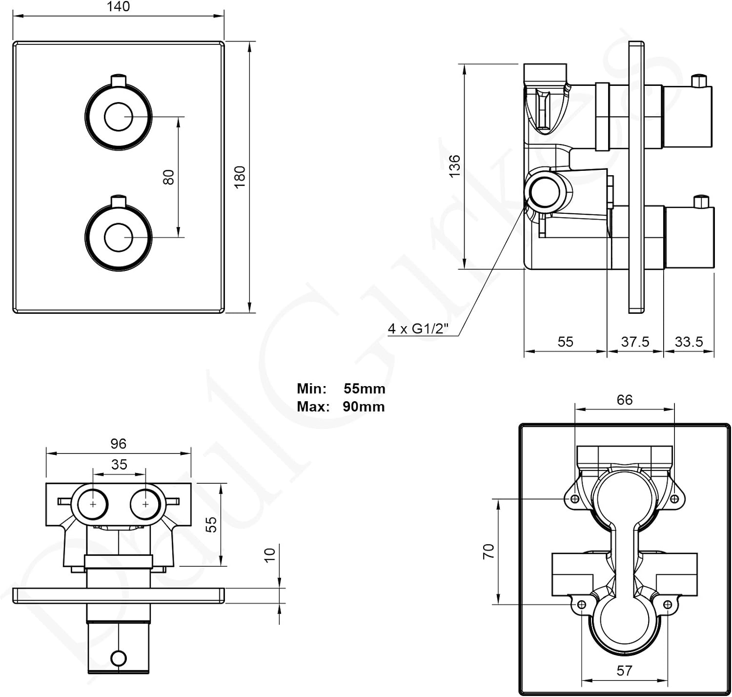 PaulGurkes Thermostat Brausebatterie Unterputz Armatur eckig Duscharmatur