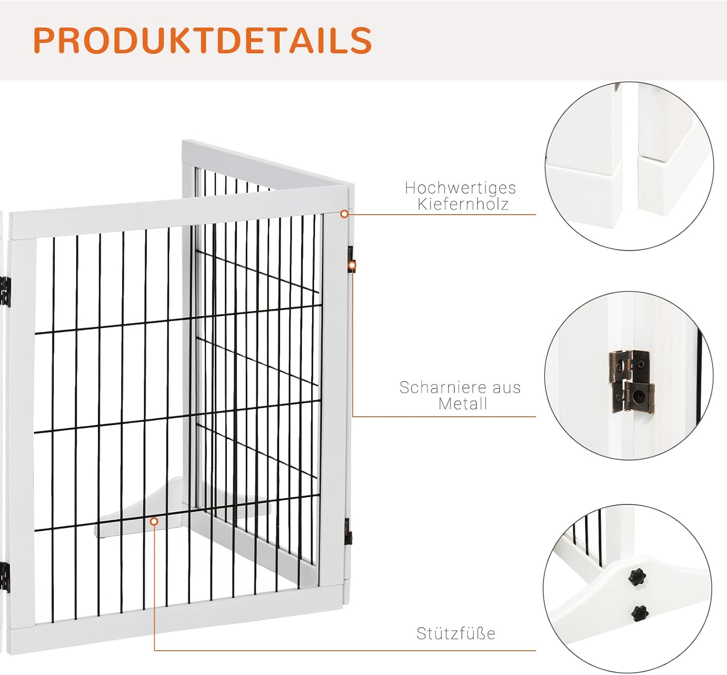 - 3 Paneele: Das Türschutzgitter besteht aus 3 Paneelen, die durch stabile Scharniere miteinander verbunden sind. Das Absperrgitter kann in unterschiedlich platziert werden, um Ihrer individuellen Situation gerecht zu werden. Widerstandsfähige