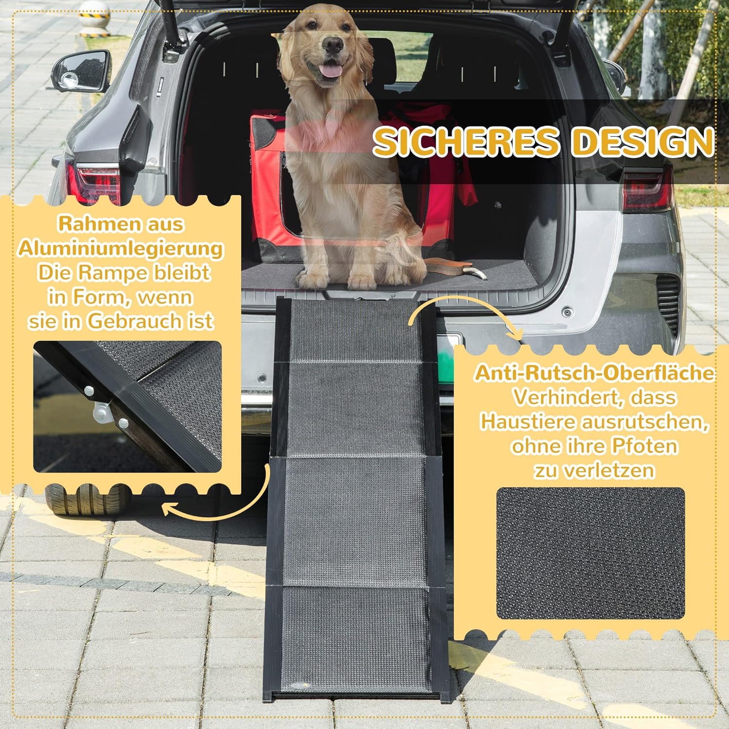 - Anti-Rutsch-Oberfläche: Sichert den Halt Ihres Hundes und schützt seine Pfoten auf der Haustierrampe, verhindert das Ausrutschen.