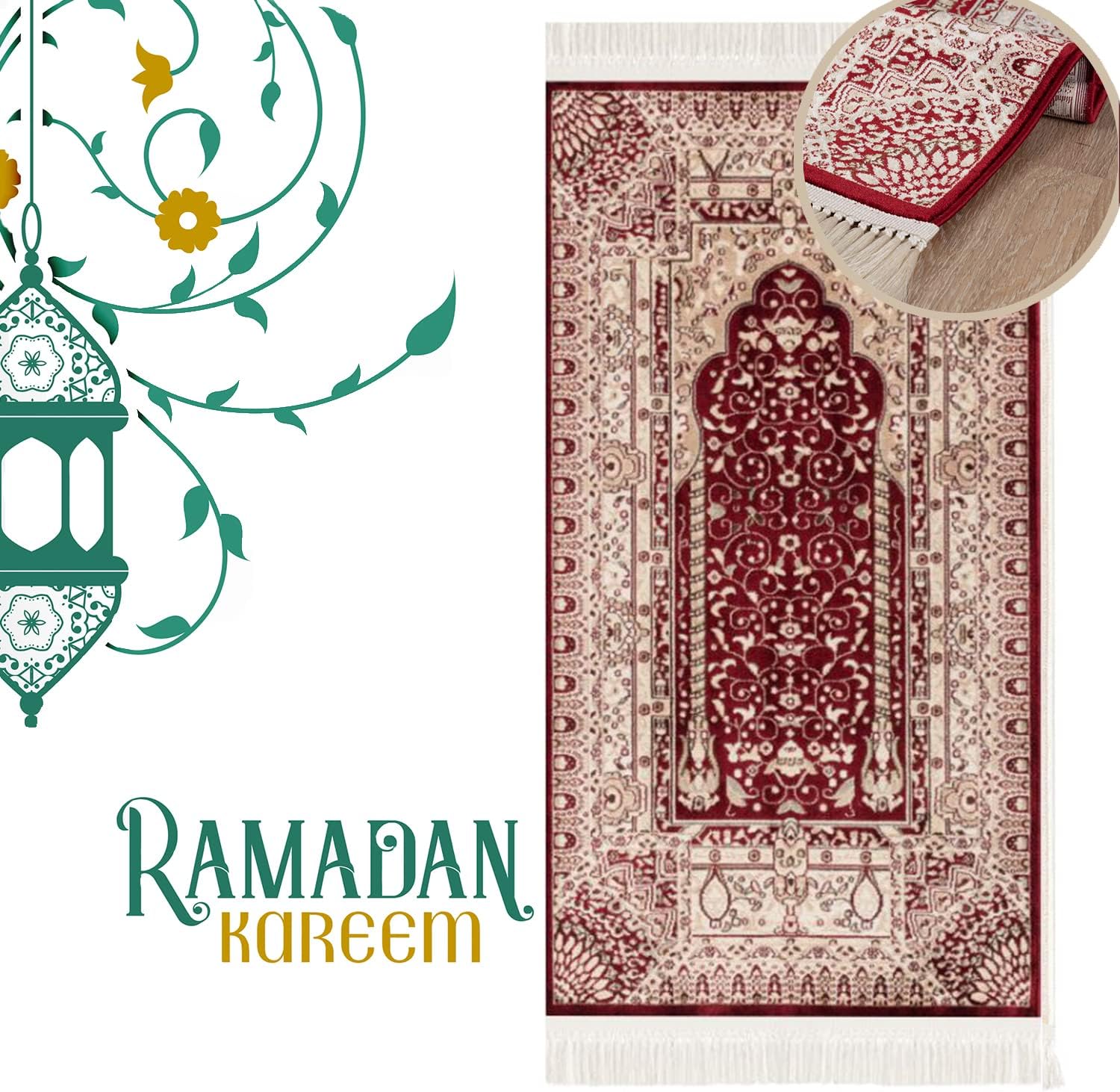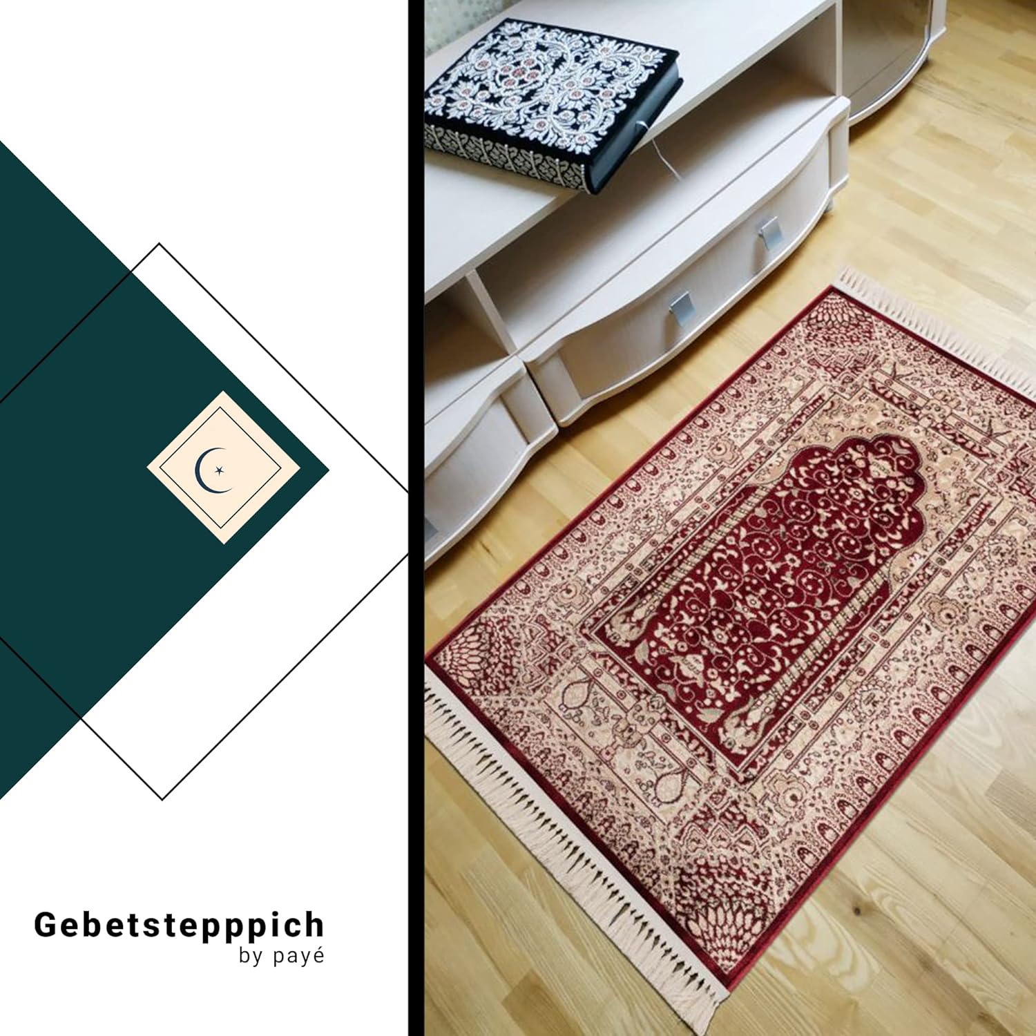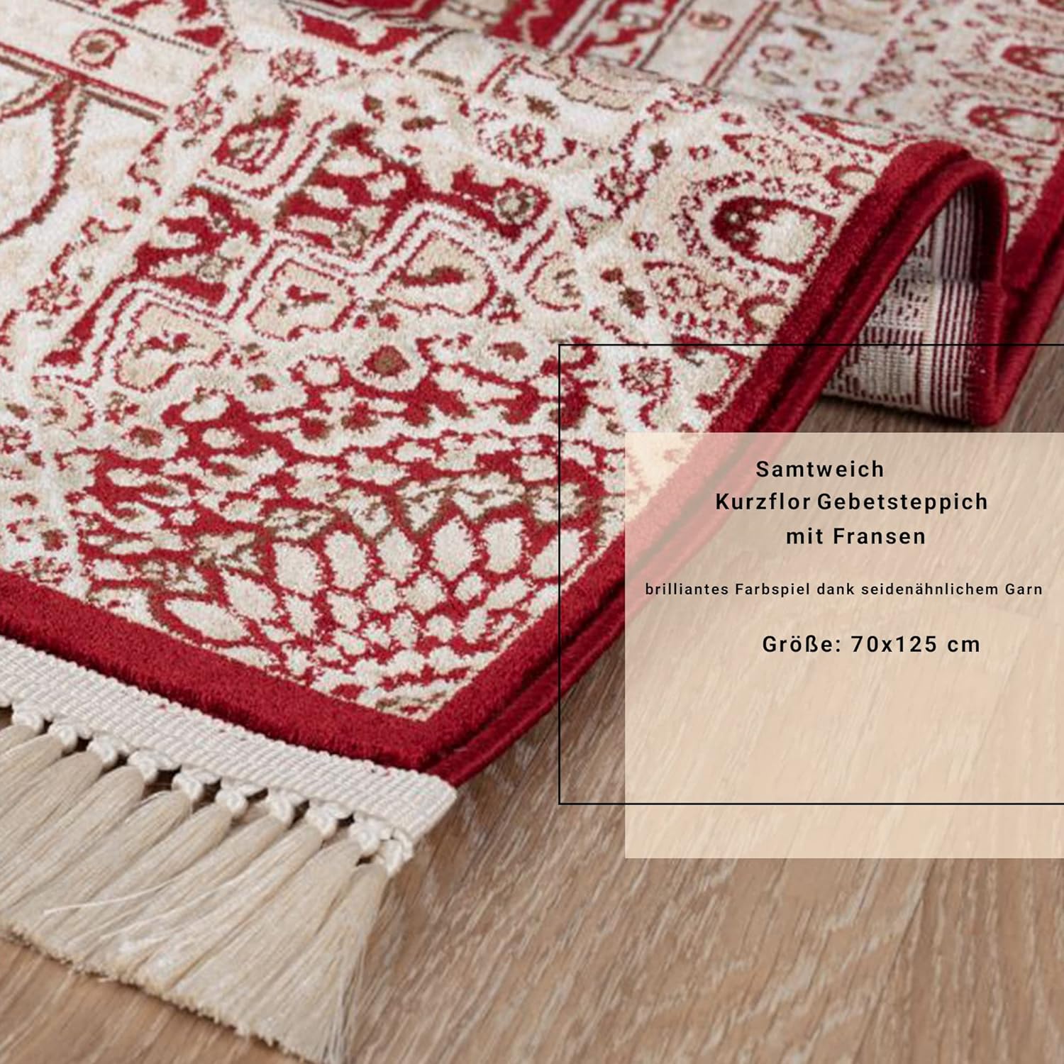 payé Teppich Gebetsteppich - Läufer Seccade Namaz - 70x125cm - Bordeaux - mit Fransen Islam Weich Wo