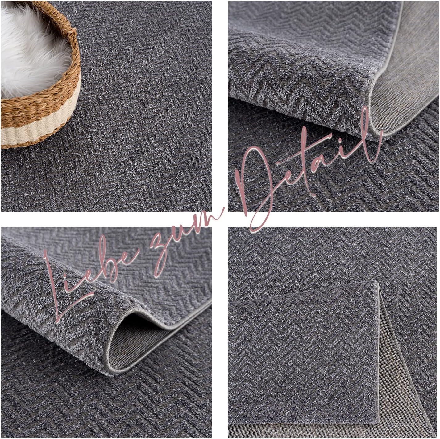 payé Teppich Wohnzimmer - Grau - 140x200cm - Meliert Muster - Einfarbig - Hoch Tief Effekt - Kurzflo