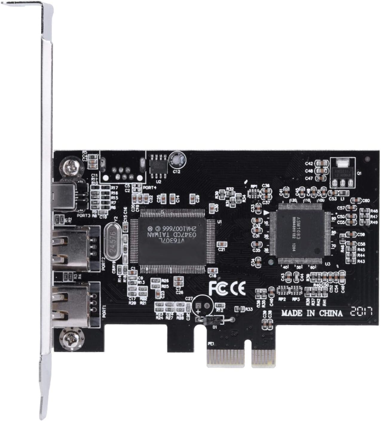 - 1-spuriger (x1) PCI-Express mit einer Übertragungsrate von 2,5 Gbit / s Vollduplexkanal. Unterstützungsbestimmungen von IEEE P1394b Revision 1.33+.