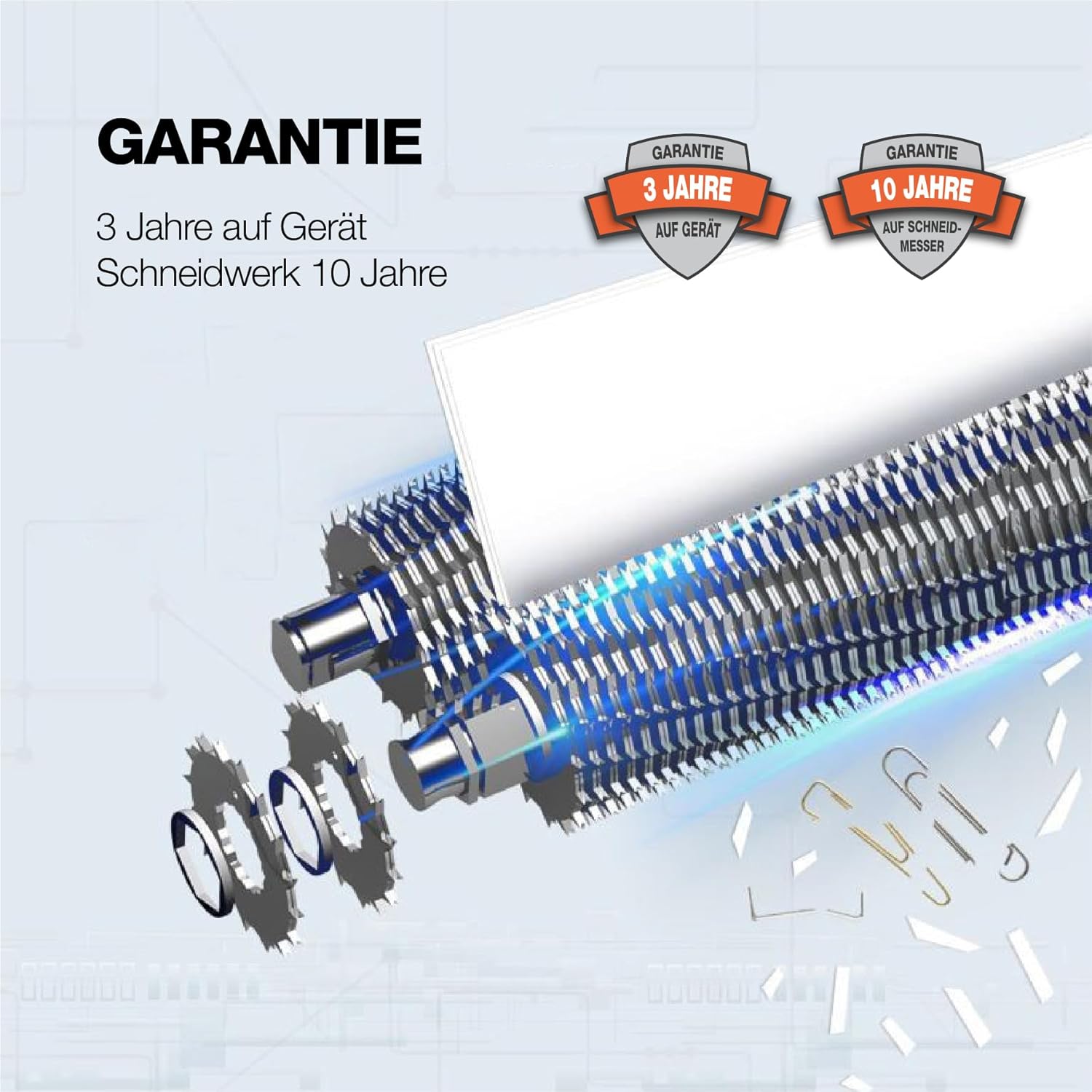 - GARANTIE: 3 Jahre auf das Gerät und 10 Jahre auf Schneidwerk.