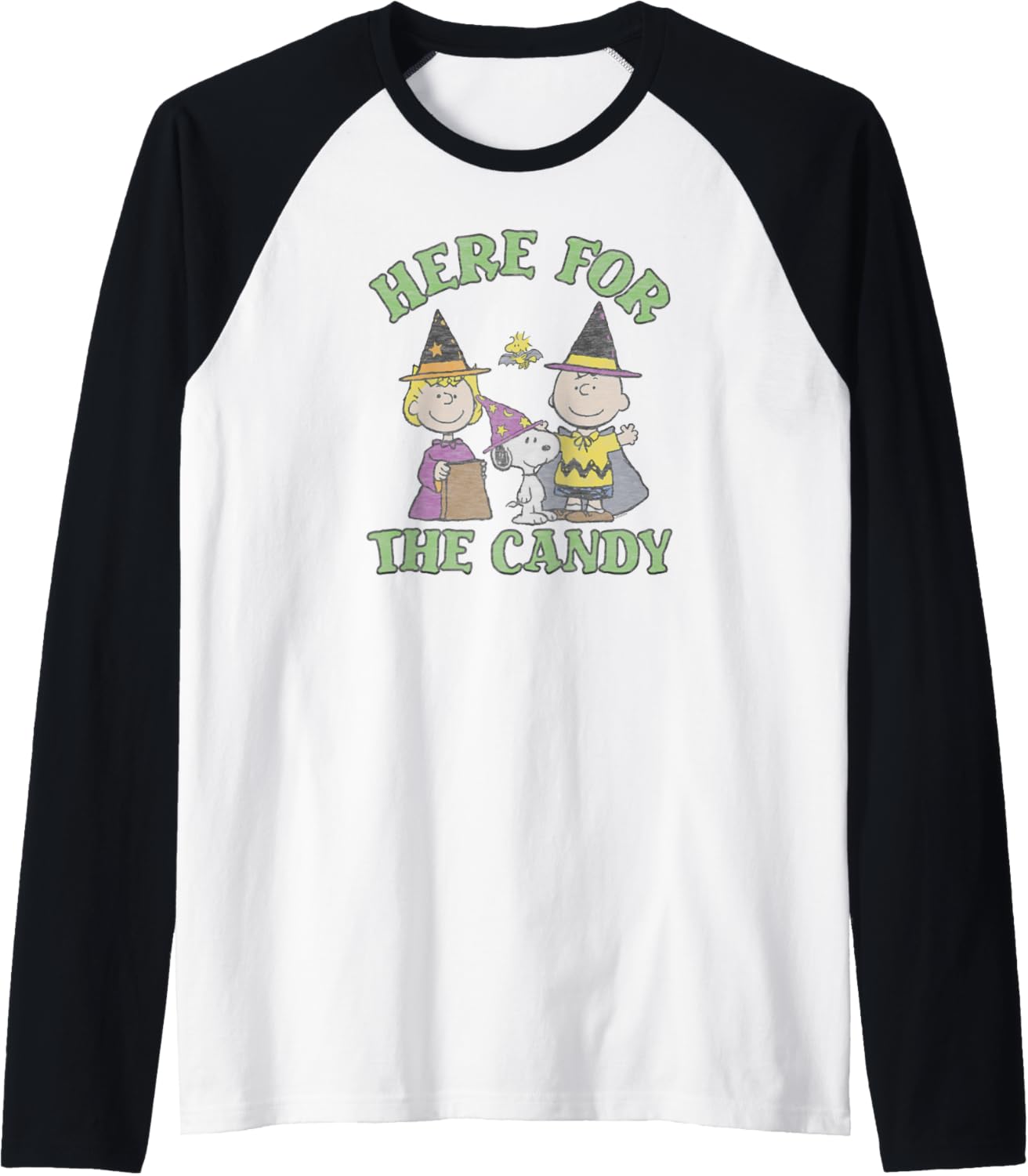 Peanuts Halloween Charlie Sally hier für die Süssigkeiten Raglan