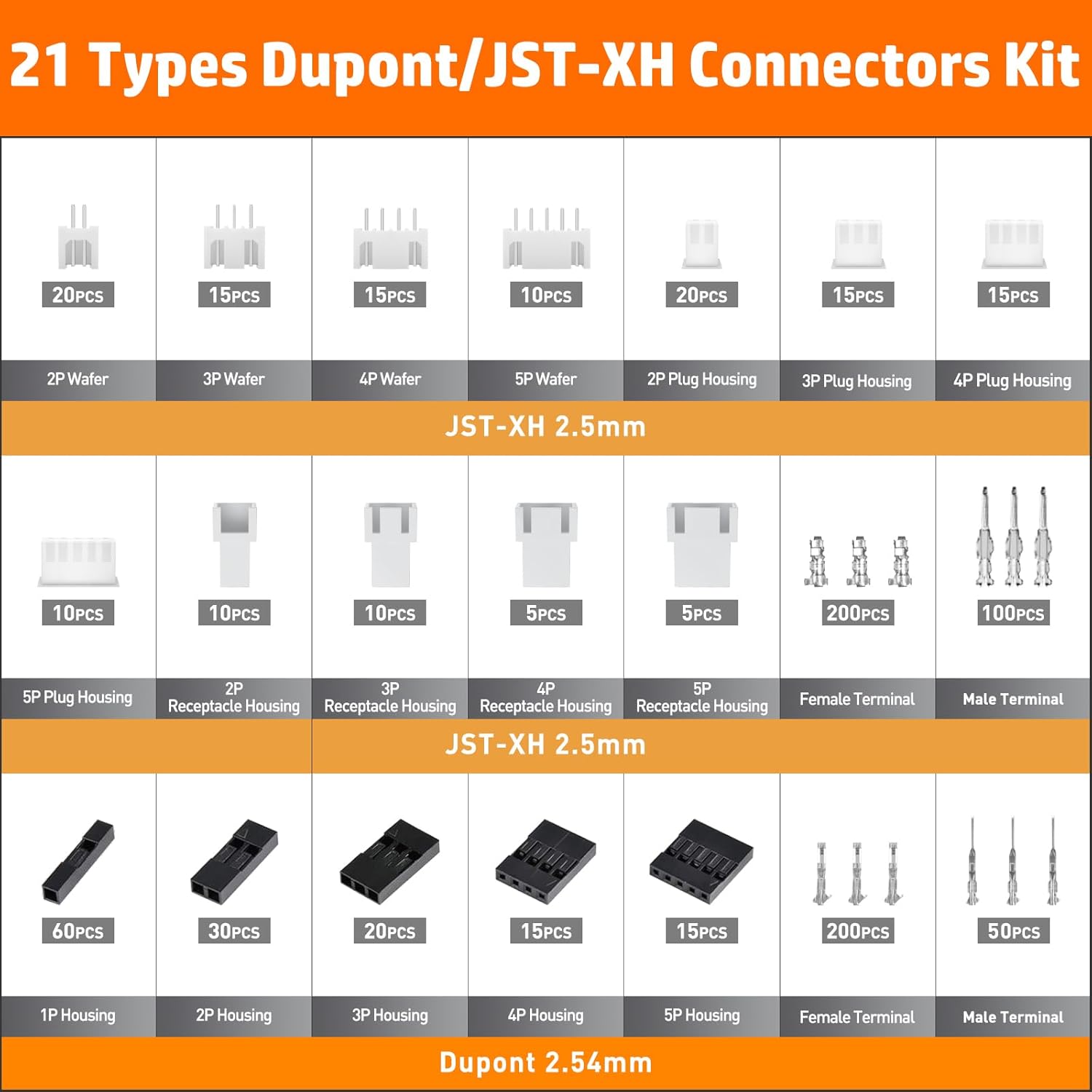 - Dupont Stecker Set: 21 Stile Dupont und JST-XH Steckverbinder Set mit Crimpzange. Perfekt für 3D-Druckern, Wartung von elektrischen, ferngesteuerten Servos und elektronischen Haushaltskomponenten etc